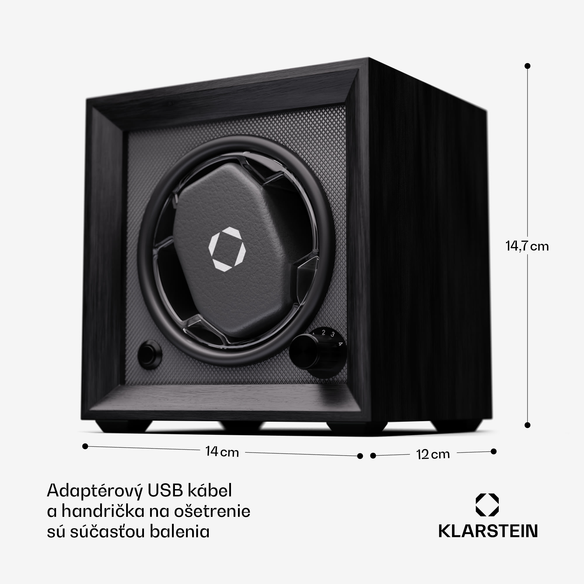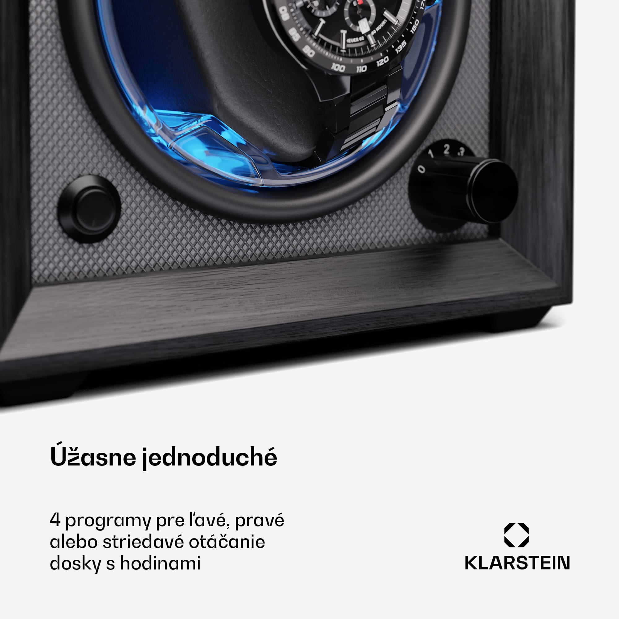 Dokonale tvarované precízne remeselné spracovanie! S naťahovačom hodiniek Klarstein Brienz 1 budú vaši elegantní spoločníci vždy dobre udržiavaní a pripravení na použitie. Automatické hodinky uložené v zariadení sa nepretržite naťahujú pomocou 4 režimov otáčania, ktoré simulujú pohyb zápästia. K starostlivosti o strojček hodiniek prispieva aj rotácia, ktorá účinne pôsobí proti stuhnutiu olejového mazania. Naťahovač hodiniek a stojan na hodinky Brienz 1 má elegantné puzdro dreveného vzhľadu, ktoré štýlovo zapadne do ambientu každej miestnosti. Štýlové integrované modré osvetlenie LED možno nastaviť pomocou jednoduchého a intuitívneho ovládania. Praktický otočný gombík na nastavenie požadovaného režimu sa nachádza vpravo. Vďaka integrovanému vankúšiku z pamäťovej peny možno do naťahovača ľahko umiestniť hodinky s rôznymi veľkosťami remienkov, ako aj dámske i pánske hodinky. Napájanie sa uskutočňuje prostredníctvom USB kábla, ktorý možno použiť s akýmkoľvek napájacím zdrojom USB, a preto je úplne nezávislý od prevládajúceho typu zásuvky.Vďaka svojim skromným rozmerom a hladkému chodu tichého motorčeka s prevádzkovou hlučnosťou nižšou ako 10 dB možno naťahovač hodiniek jednoducho umiestniť priamo na nočný stolík alebo do iných nehlučných zón.Upozorňujeme, že zobrazené hodinky nie sú súčasťou dodávky.
