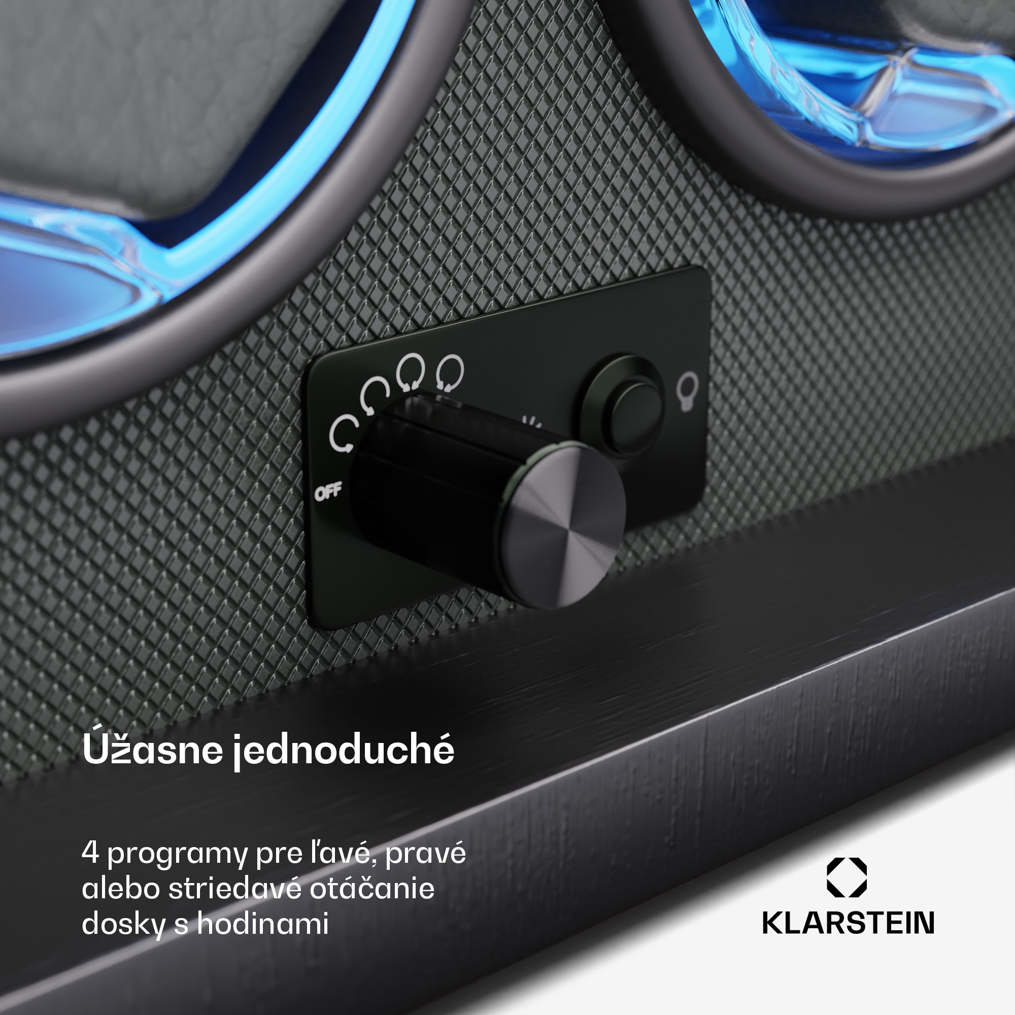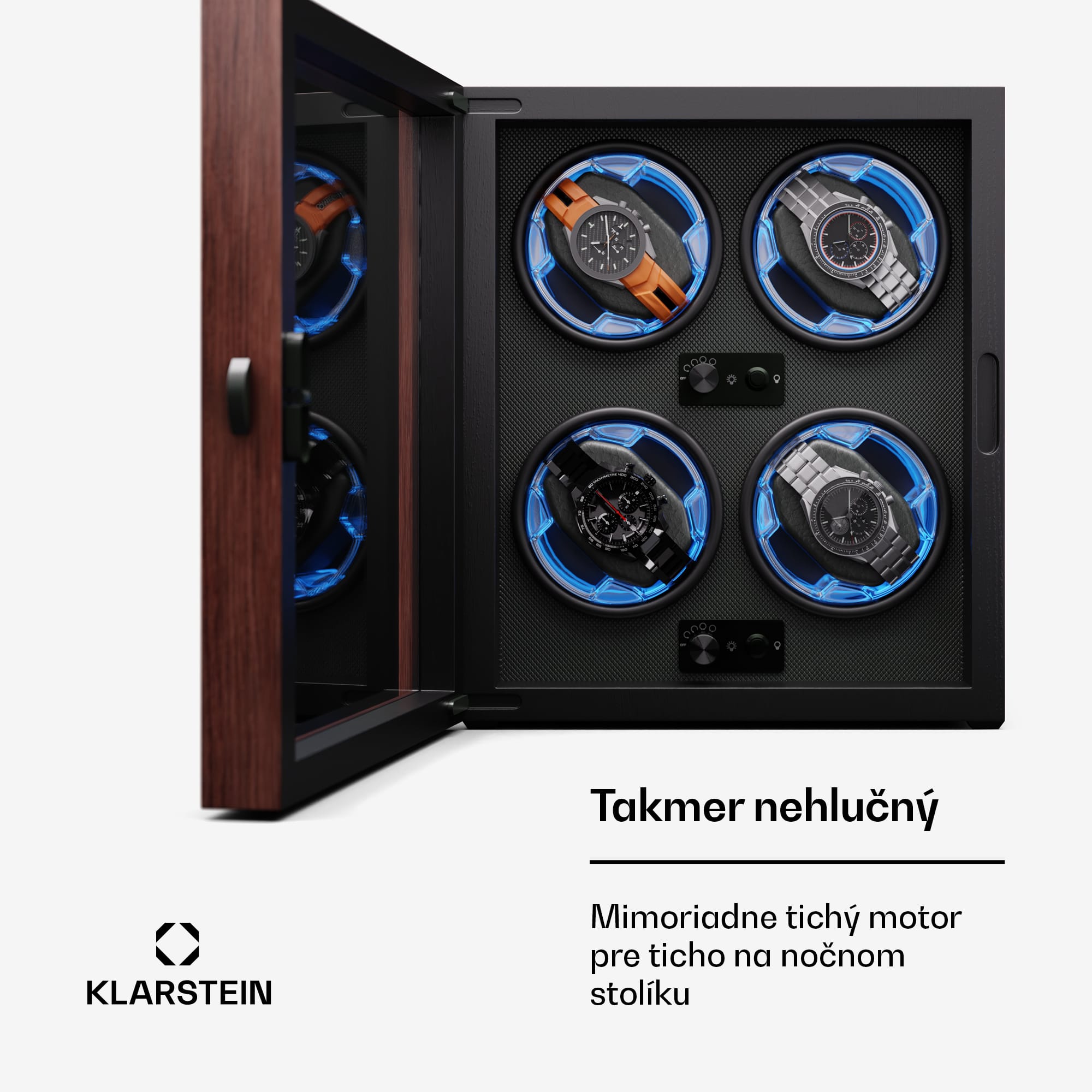 Klarstein Brienz 4, naťahovač hodiniek, 4 hodinky, 4 režimy, drevený vzhľad, modré vnútorné osvetlenie
