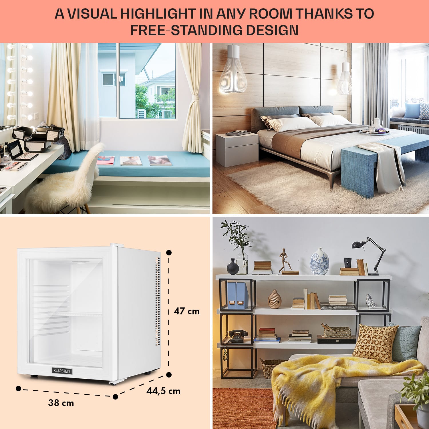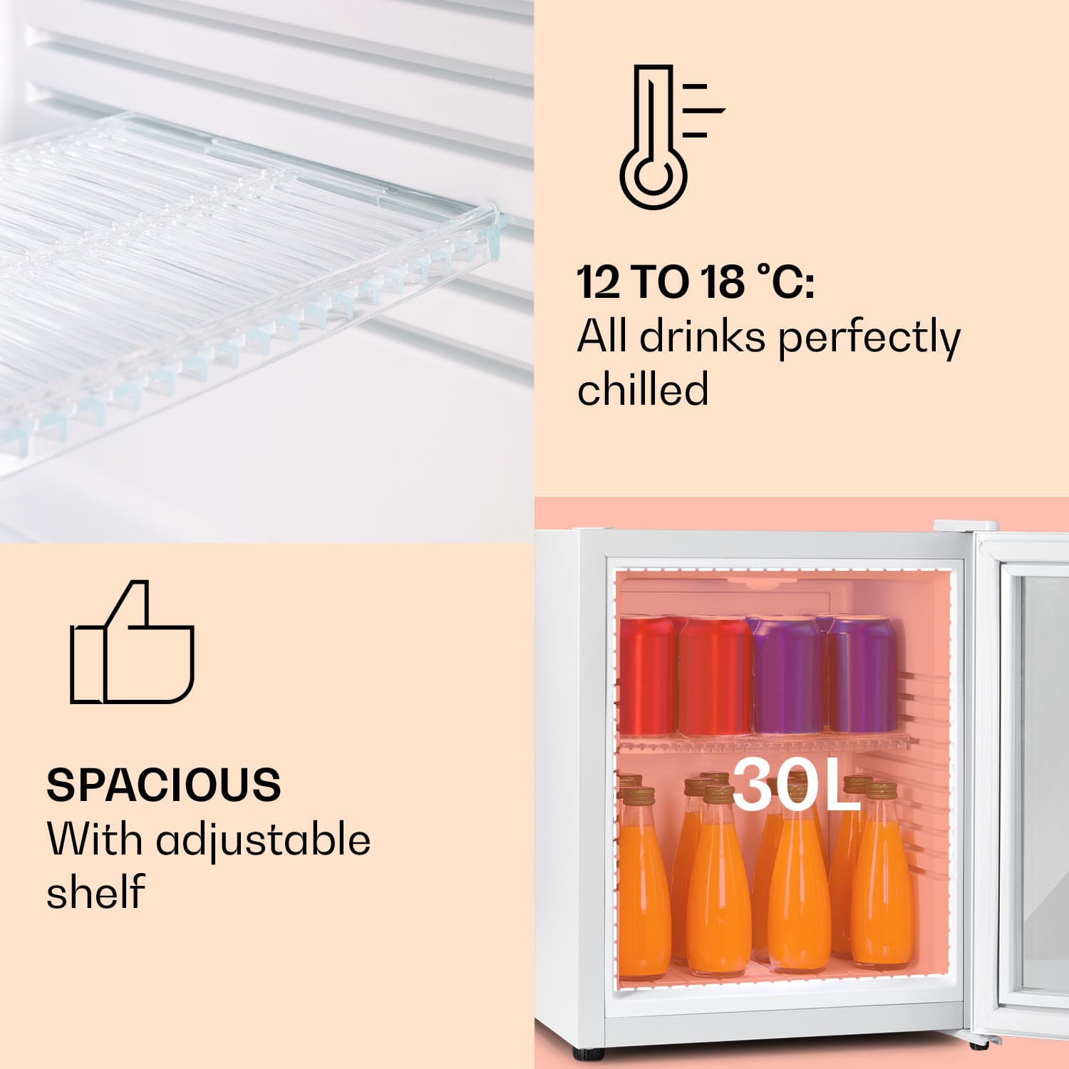 Klarstein Brooklyn 32, mini chladnička, sklenené dvere, LED osvetlenie, police
