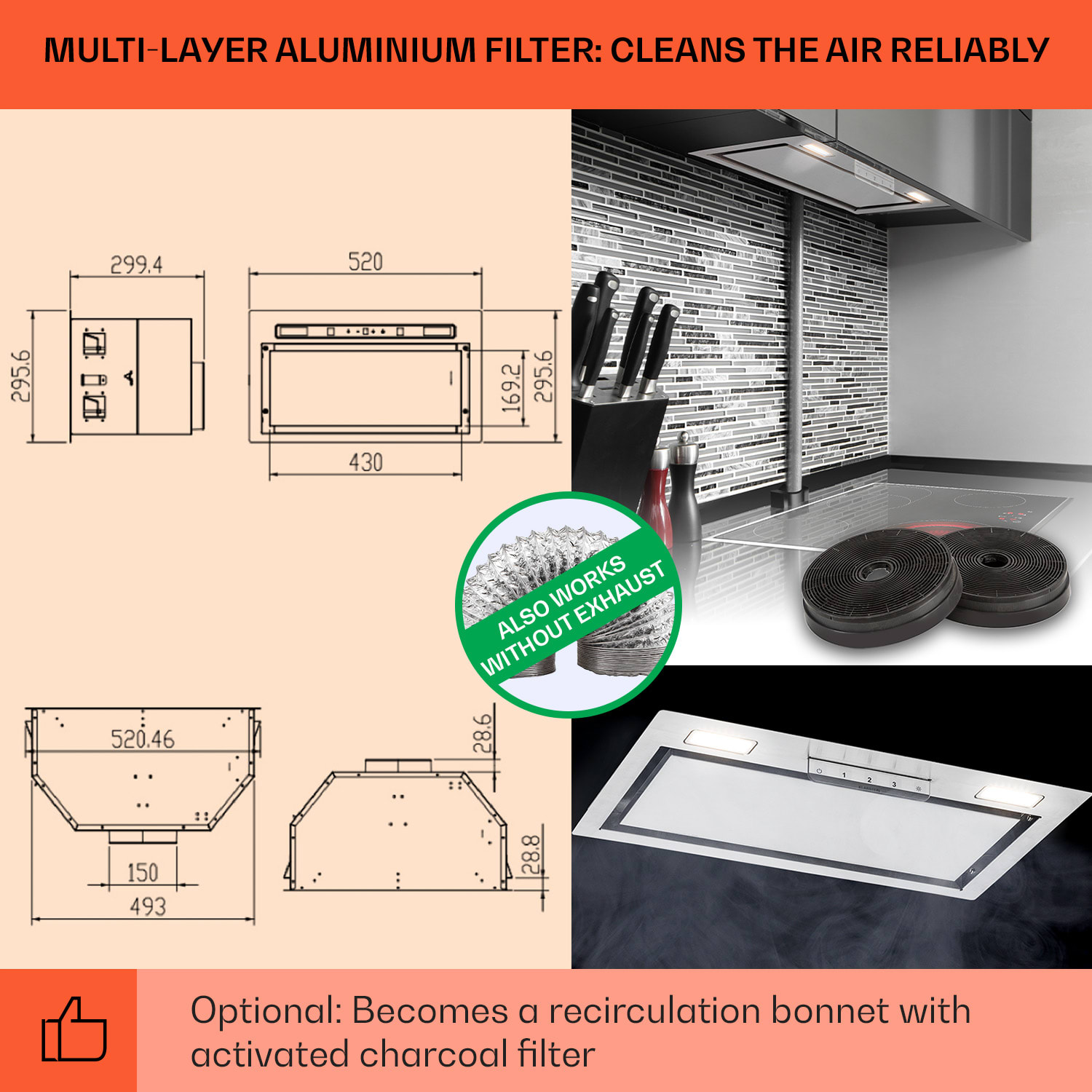 Klarstein Camila, vstavaný digestor, 52 cm, 397 m³/h, LED, dotyková plocha, nehrdzavejúca oceľ