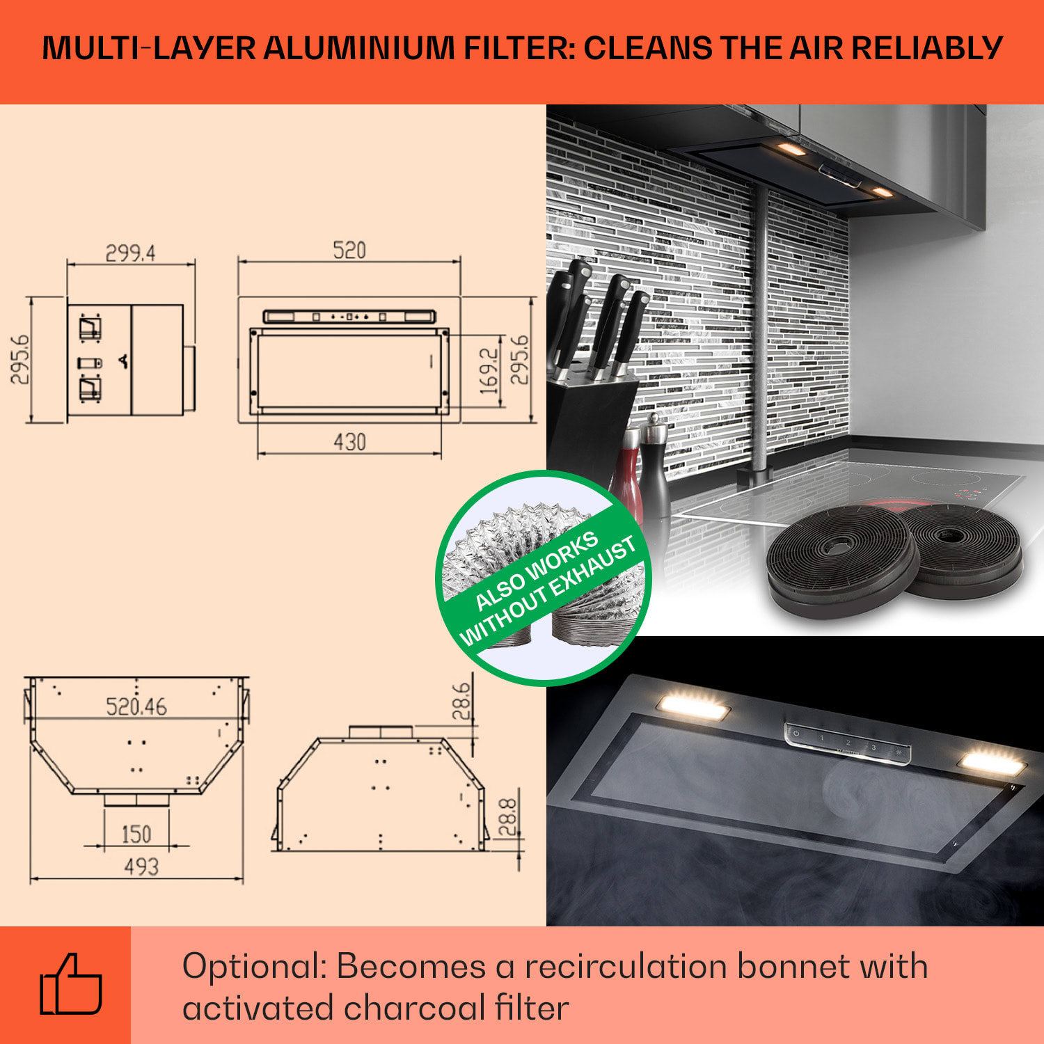 Klarstein Camila, vstavaný digestor, 52 cm, 397 m³/h, LED, dotyková plocha, nehrdzavejúca oceľ