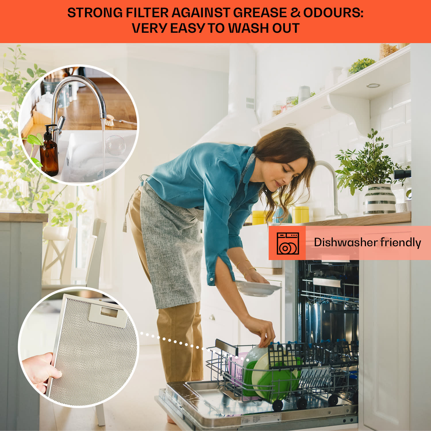 Najlepší vzduch v kuchyni: digestor Camila od Klarstein sa bez okrajov skryje do kuchynskej linky. Odtiaľ rýchlo odstraňuje paru a výpary pri varení – s výkonom motora 70 W, tromi rýchlosťami a prietokom až 397 m³/h odsávaného vzduchu. Prostredníctvom jednoduchého dotykového ovládania môžete ovládať odsávanie a osvetlenie a ľahko aktivovať posilňovač výkonu i 5-minútový časovač do vypnutia. Vďaka svojmu čistému a zároveň elegantnému dizajnu sa digestor Camila krásne začlení do každého kuchynského prostredia a možno ho prepnúť do režimu recirkulácie s filtrami s aktívnym uhlím.