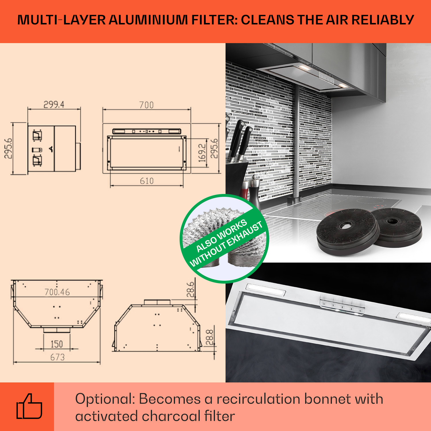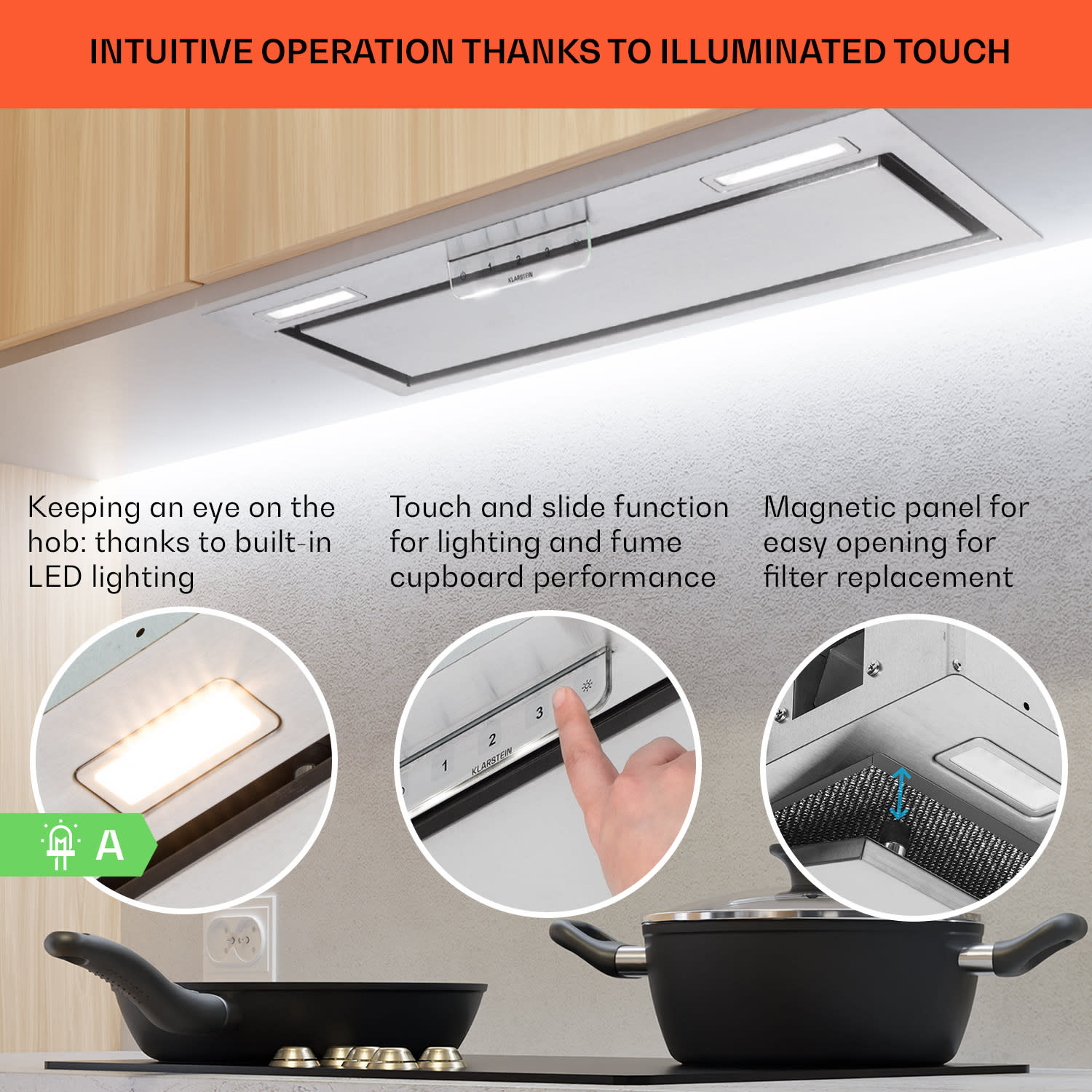 Klarstein Camila, vstavaný digestor, 70 cm, 397 m³/h, LED, dotyková plocha, nehrdzavejúca oceľ