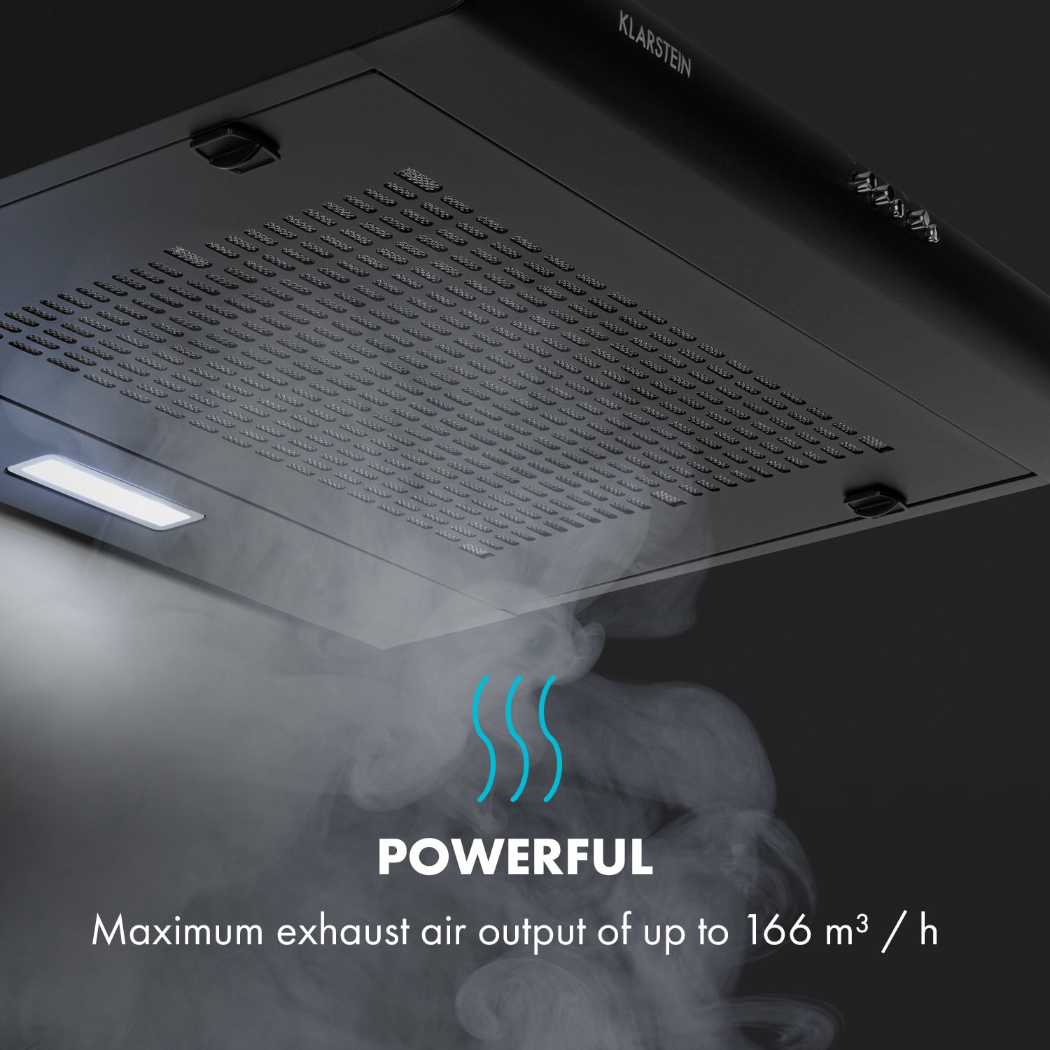 Klarstein Capannina, digestor, 60 cm, podskrinkový, 166 m³/h, LED, nehrdzavejúca oceľ, čierny