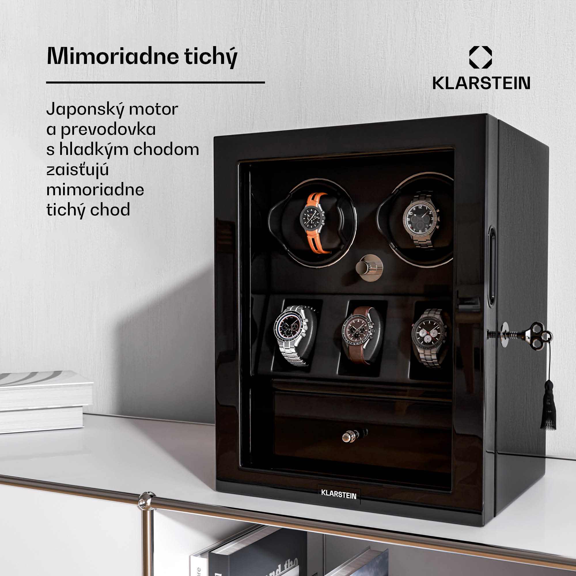Klarstein ChronoVault naťahovač hodiniek, 2+3 hodinky, vegánsky, vysoký lesk, 4 režimy, motor Mabuchi, LED, zásuvka