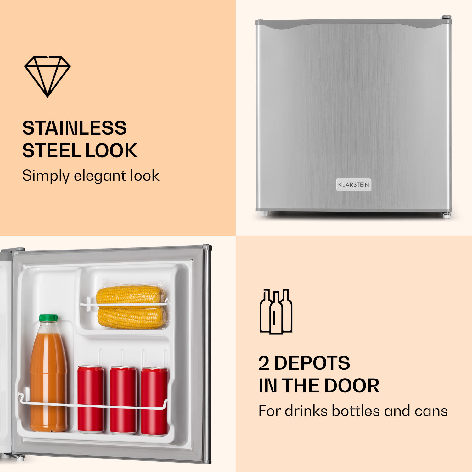 Klarstein CO2-50L1-SG, chladnička, 46 l, energet. trieda F, nehrdzavejúca oceľ, priehradka na ľad