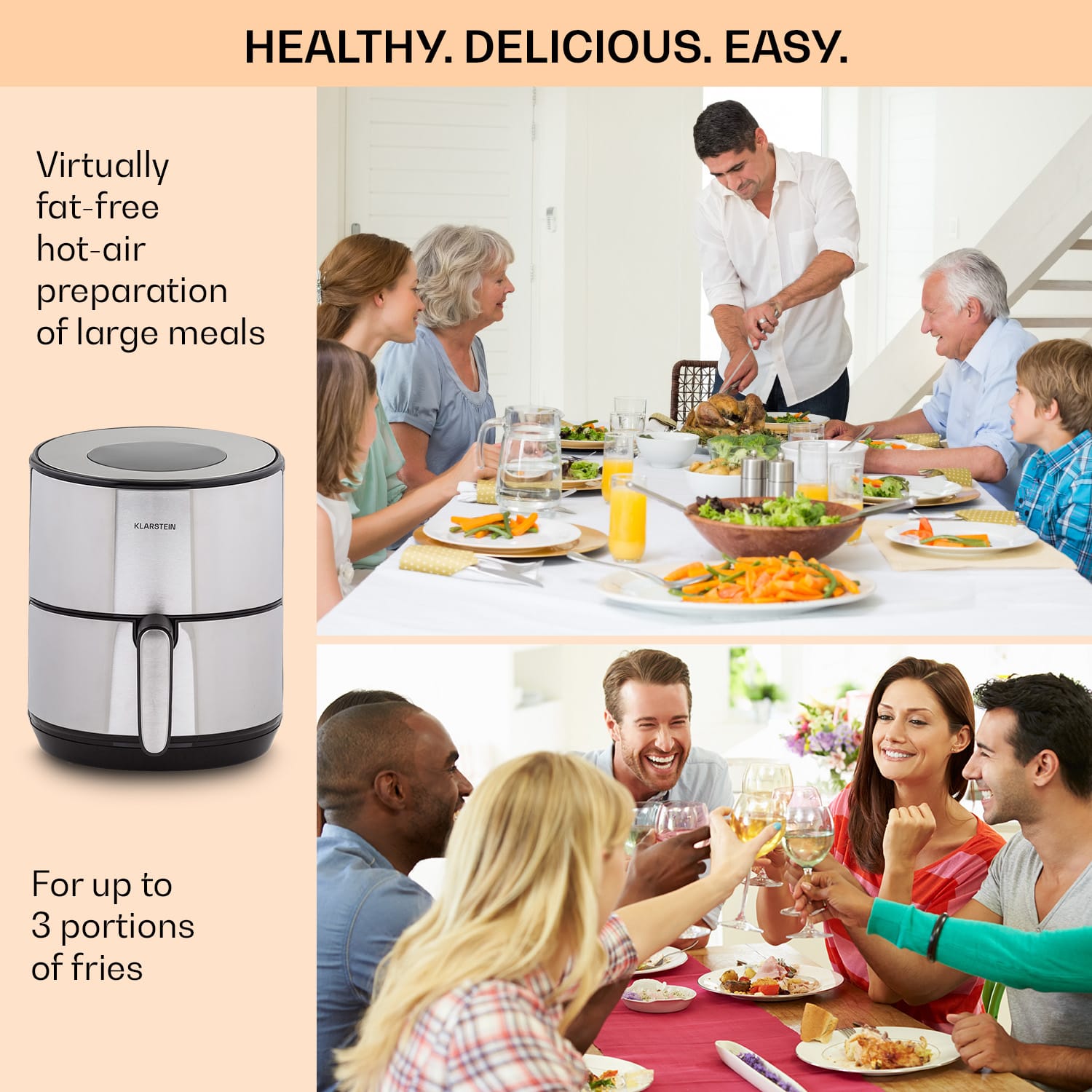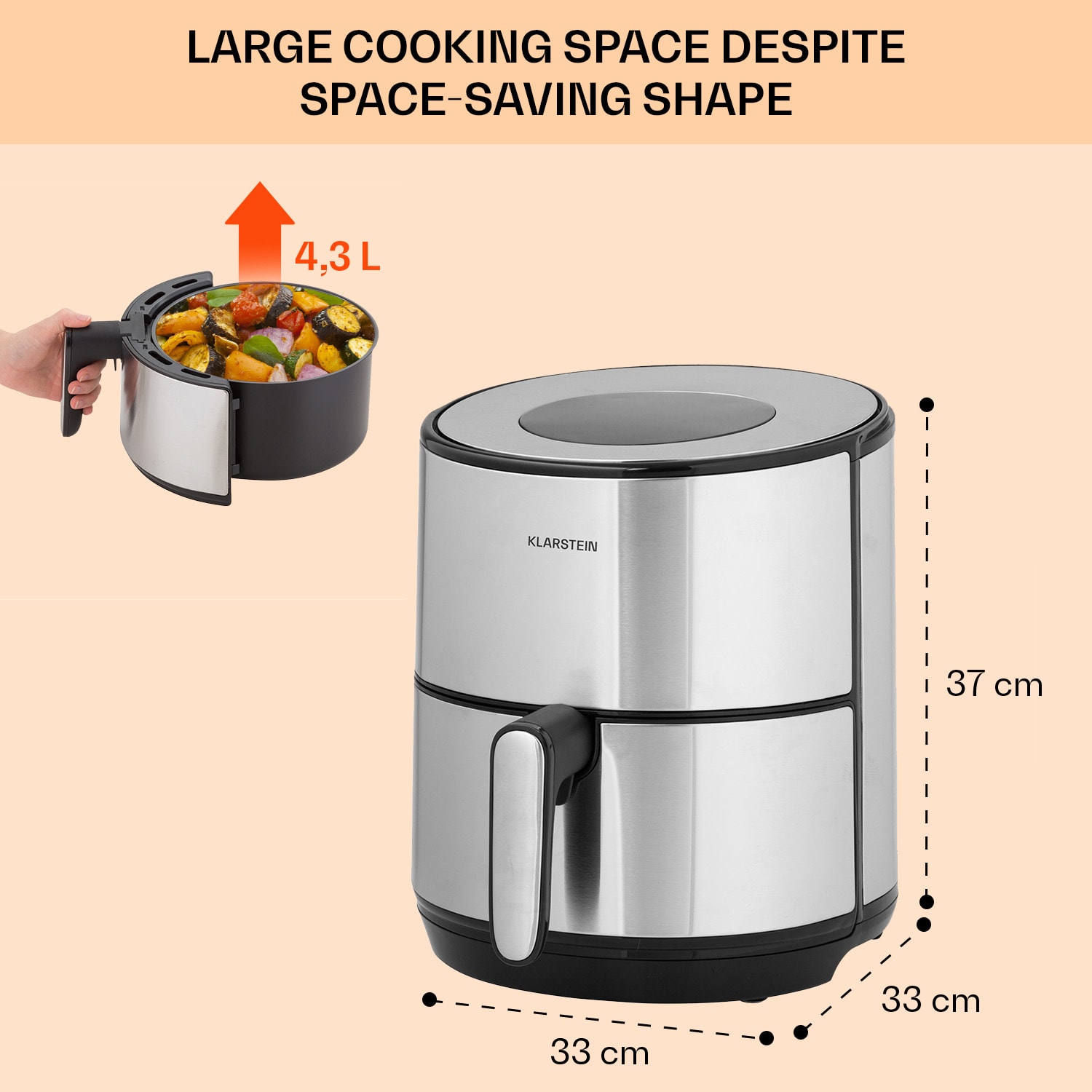 Klarstein Crisp-Pro, teplovzdušná fritéza, 1500 W, 4,3 l, nehrdzavejúca oceľ