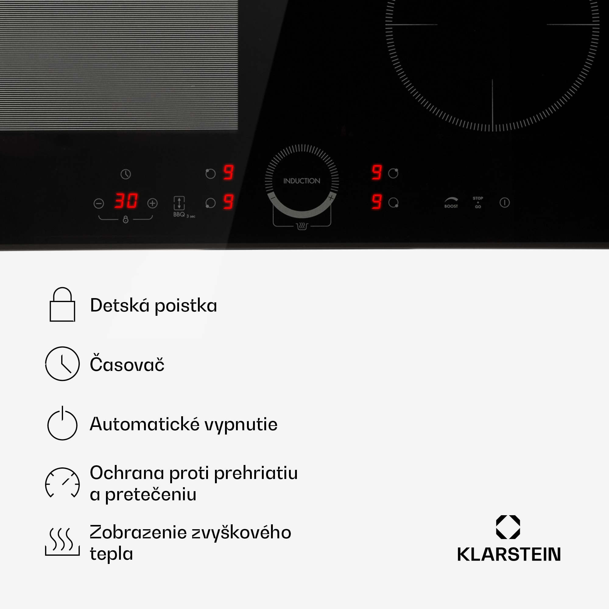 Jednoducho flexibilné varenie: Indukčná varná doska Klarstein Delicatessa 60 Hybrid umožňuje optimálne využitie priestoru s minimálnou spotrebou energie pri varení. Kombinuje pri tom technické inovácie s luxusným vzhľadom a prináša do kuchynskej linky so svojím sklokeramickým povrchom nový lesk. Vstavaná varná doska Klarstein Delicatessa 60 Hybrid ponúka štyri varné platne s celkovým výkonom až 7000 W (2 x 2000 W), ktoré sa rozdeľujú na 2 x 2000 W a 2 x 1500 W na jednotlivých varných plochách – vďaka čomu obsah hrncov a panvíc zovrie v špičkových časoch. Pritom sa zjednocujú obidve ľavé varné zóny do jednej flexi zóny pomocou funkcie VarioHeating: vďaka funkcii rozpoznania veľkosti hrnca sa s maximálnou flexibilitou prispôsobí veľkosti umiestnených hrncov, panvíc alebo kastrólov, a tak sa zohrieva aj veľký kuchynský riad, ktorý sa nezmestí na jednu varnú plochu. Na jednej strane zariadenie Delicatessa 60 Hybrid naozaj využíva len energiu, ktorá je vhodná pre daný hrniec, a na druhej strane umožňuje používať takmer akúkoľvek veľkosť hrnca alebo panvice. Výkon všetkých plôch je možné ovládať samostatne a majú k dispozícii funkciu ThermoBoost, ktorá zvyšuje výkon s cieľom rýchleho zohrievania na 2800 W. Sklokeramická varná doska Klarstein Delicatessa 60 Hybrid sa jednoducho ovláda pomocou integrovaného dotykového panelu SenseControl s Touch-to-slide ovládaním výkonu posunutím prsta po ploche a pomocou digitálneho displeja. Takže ani gombíky a regulátory nenarúšajú povrch kuchynskej linky. Okrem výkonu sa dá naprogramovať aj časovač až na 99 minút pre každú varnú dosku. Časovač buď vypne varnú dosku po uplynutí nastaveného času, alebo vydá akustický signál. Aby počas varenia všetko prebiehalo hladko, vstavaný sporák Delicatessa 60 Hybrid má širokú škálu poistiek: Ochrana proti prehriatiu s automatickým vypnutím sa stane aktívnou, ak je varná platňa príliš horúca. Indikátor zvyškového tepla princípu EcoThermal Control vás informuje nielen o tom, či sú vypnuté varné plochy stále horúce. Umožňuje tiež varenie pomocou zvyškového tepla na úsporu energie. Funkcia ThermalRecall si pamätá nastavenú teplotu a použije sa, ak by bol proces varenia krátkodobo prerušený a neskôr by sa v ňom malo pokračovať. Okrem toho môže byť aktivovaný detský zámok, aby sa zabránilo náhodným zmenám nastavení varenia. Opticky indukčná varná doska Klarstein Delicatessa 60 Hybrid presviedča svojím ľahko udržiavateľným sklokeramickým povrchom, ktorý skúsene uvádza indukčný sporák na scénu. Týmto spôsobom sa varná doska hravo začlení do každej kuchyne – či už klasickej, alebo modernej. Materiál, potrebný na inštaláciu do pracovnej dosky, je priamo súčasťou balenia.