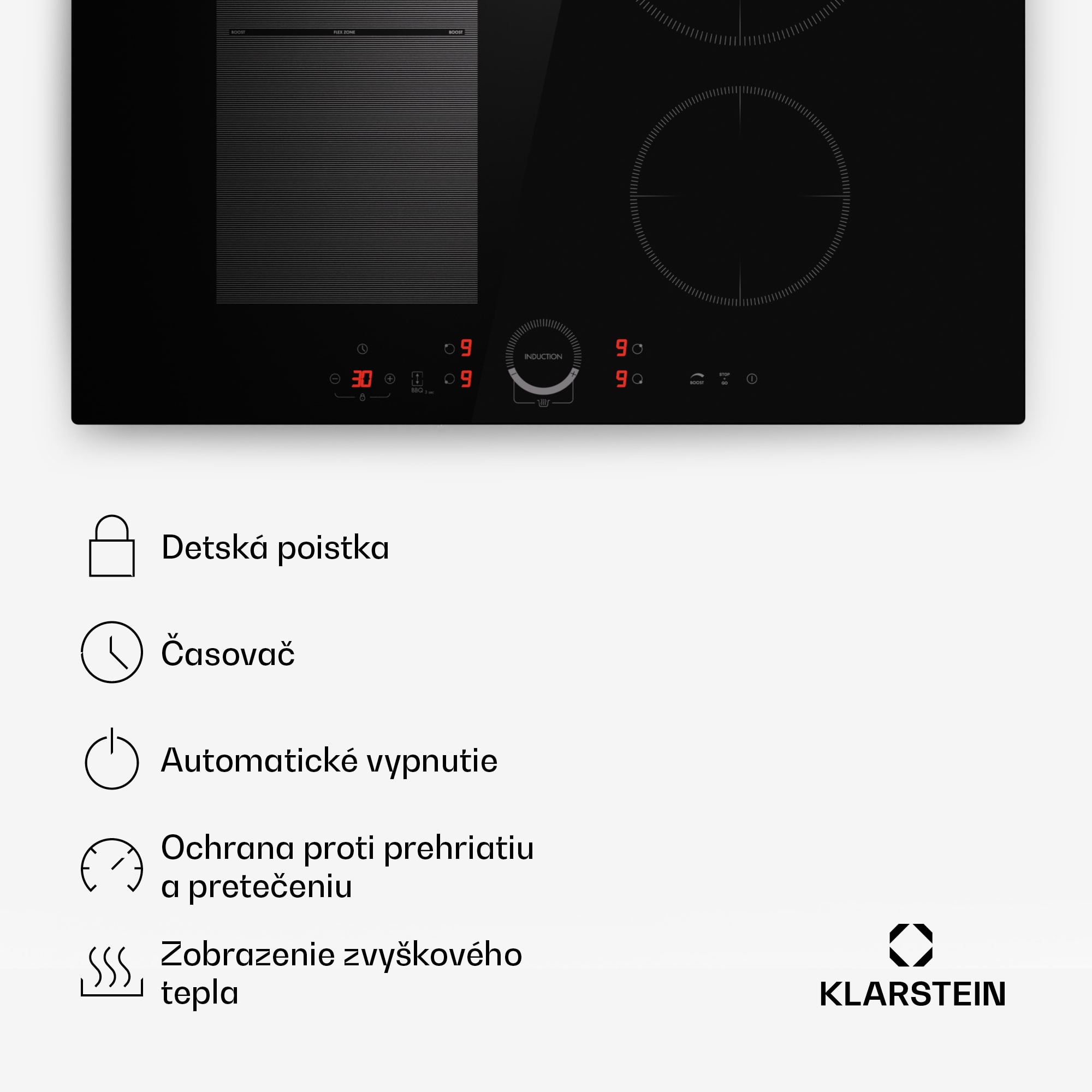 Klarstein Delicatessa 70 Hybrid, vstavaná indukčná varná doska, 4 zóny, 7000 W, sklokeramika