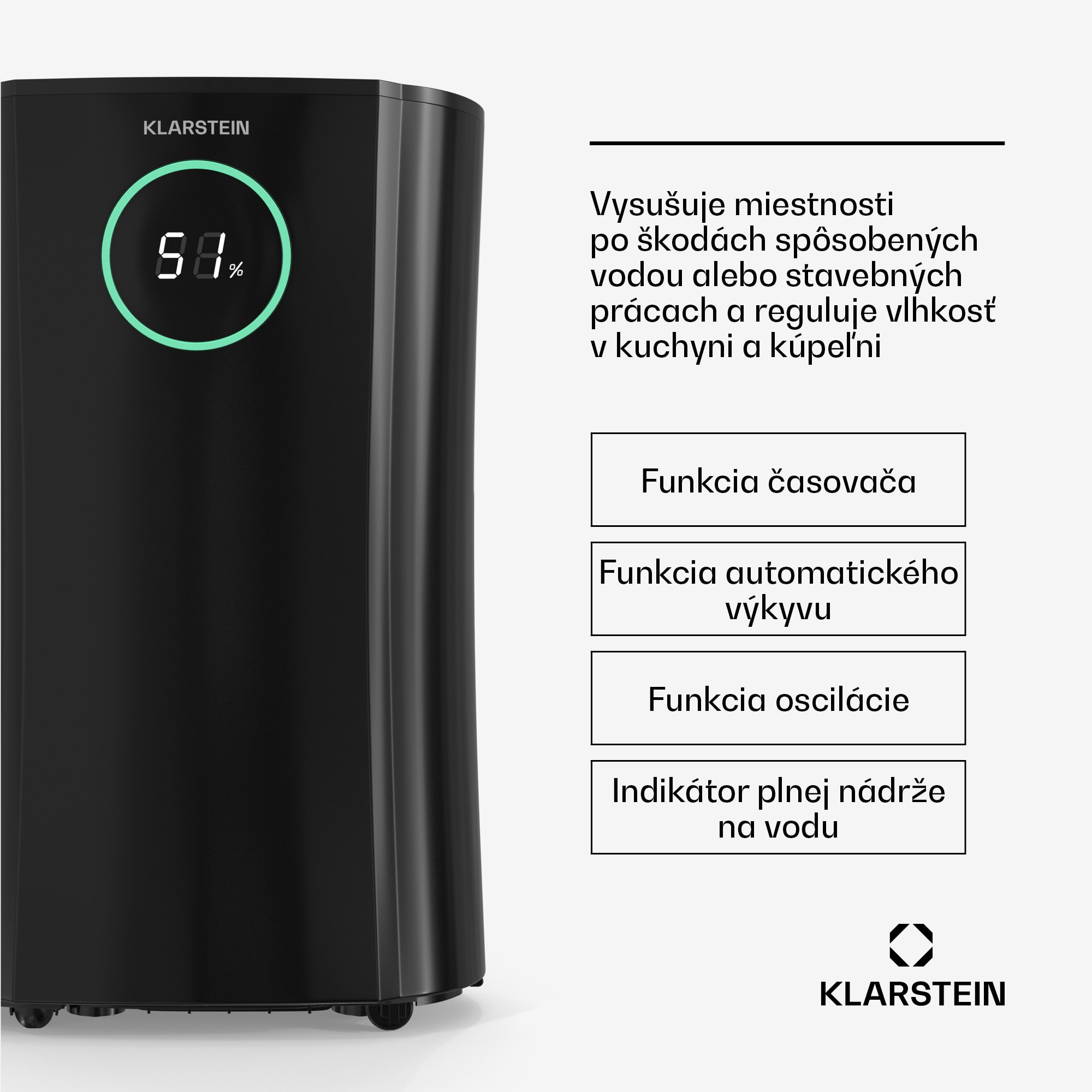 Odvlhčovač vzduchu Klarstein DryFy ProConnect 24L ponúka výkonnú a efektívnu reguláciu vlhkosti pre váš domov alebo kanceláriu. S pôsobivým výkonom odvlhčovania až 24 litrov za deň je toto zariadenie ideálne pre miestnosti do 30 m². Vďaka inteligentnému senzoru vlhkosti je možné nastaviť požadovanú vlhkosť v 5% prírastkoch od 40-80% vlhkosti v miestnosti, čo umožňuje presnú kontrolu a zabraňuje plytvaniu energiou. Spotrebič pracuje optimálne pri teplotách v rozmedzí 5-35 °C. Integrovaná funkcia Wi-Fi vám umožňuje ovládať odvlhčovač prostredníctvom aplikácie Klarstein, takže môžete pohodlne regulovať vlhkosť odkiaľkoľvek. Tento odvlhčovač do domu je ideálny pre každodenné použitie.Odvlhčovač vzduchu Klarstein DryFy ProConnect 24L má filter s aktívnym uhlím, ktorý okrem vlhkosti odstraňuje zo vzduchu aj prach, pachy a baktérie, čím zabezpečuje zdravú klímu v miestnosti. Odnímateľná nádrž na vodu má objem 4 litre a ľahko sa vyprázdňuje. Dodatočné funkcie ako 24-hodinový časovač, rôzne prevádzkové režimy a automatické odmrazovanie robia z Klarstein DryFy ProConnect 24L všestranný a spoľahlivý odvlhčovač vzduchu.