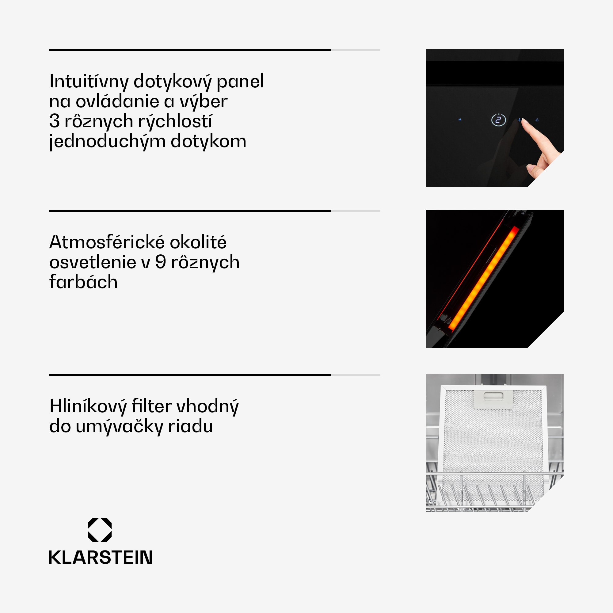 Klarstein Eleonora 60, digestor, 60 cm, nastenný, 426 m³/h, dotykový panel, LED, A++, čierny