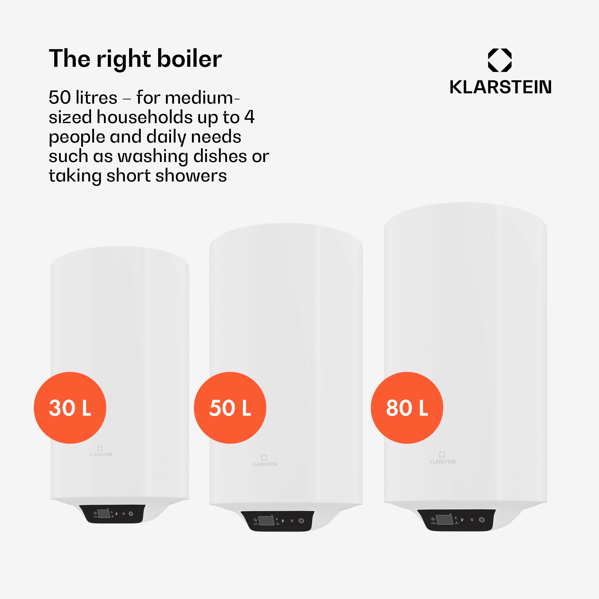 Klarstein ENDURAHEAT SMART 50, bojler, 50 litrov, 75°C. 1500 W, 3 veľkosti biely