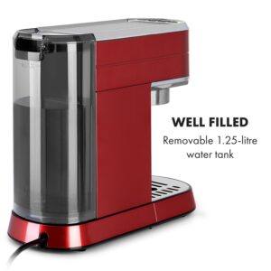 Pre vášnivých fajnšmekrov: Espresso kávovar Klarstein Espressionata Evo zaujme nielen rýchlo pripraveným, výkonným a lahodným espressom, ale aj pozoruhodným dizajnom.Espressionata Evo pretlačí horúcu vodu cez mleté kávové zrná s výkonom 950 W a tlakom 19 barov, čím uvoľní ich plnú arómu. Odnímateľná nádržka na vodu má objem 1,2 litra a možno ju jednoducho vybrať, naplniť a znova vložiť. Obsluha je jednoduchá a zrozumiteľná: štyri veľké tlačidlá s jasnými symbolmi a im zodpovedajúce svetelné zobrazenia sú úžasne jasné. Vrcholom espresso kávovaru je nepochybne veľký displej teploty v retro vzhľade: je ľahko čitateľný a poskytuje neustále informácie o teplote. Para sa dá intuitívne ovládať pomocou veľkého otočného ovládača a pohyblivá tryska na napenenie a horúcu vodu vykúzli napenené mlieko na cappuccino alebo iné špeciality behom chvíľky. Para sa dá intuitívne ovládať pomocou veľkého otočného ovládača a pohyblivej trysky napenie a horúcu vodu vykúzli napenené mlieko na cappuccino alebo iné špeciality behom chvíľky.Kávovar na espresso Espressionata Evo od spoločnosti Klarstein so svojím mimoriadnym retro dizajnom upúta pozornosť v každej kuchyni a vždy zaujme čerstvo pripravenými kávovými špecialitami.