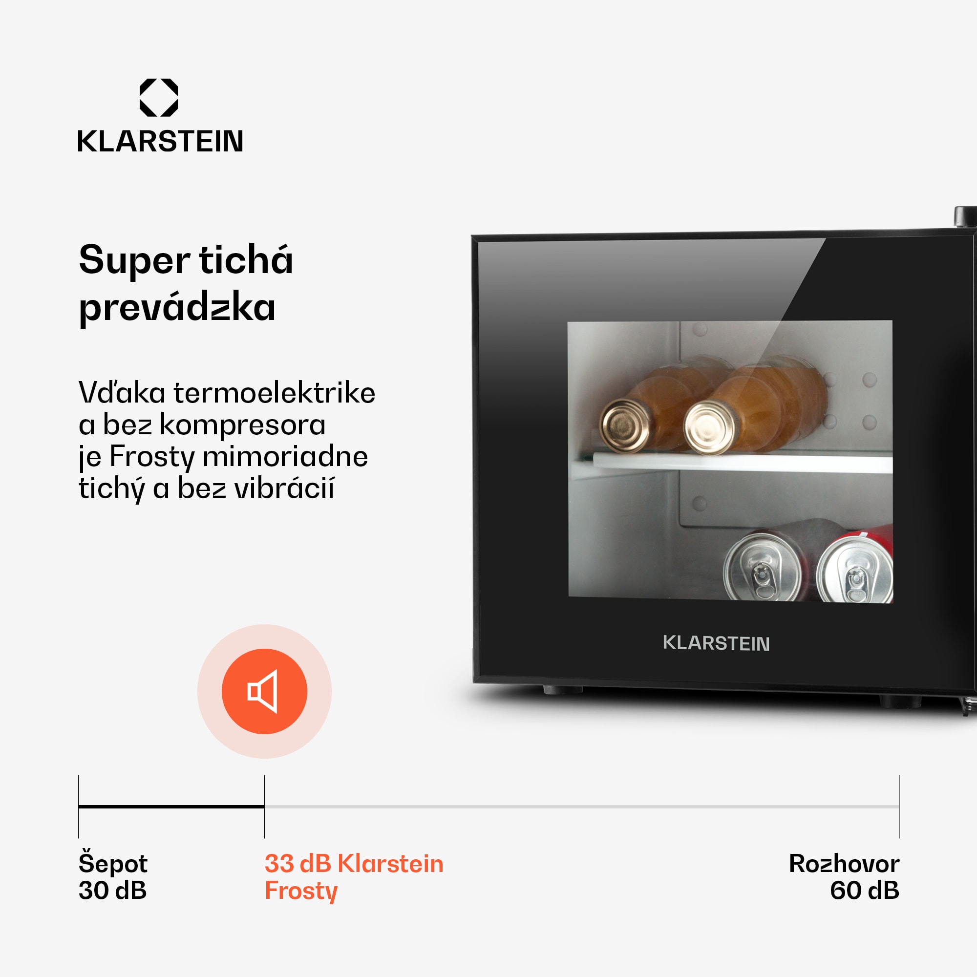 S mini chladničkou Frosty od spoločnosti Klarstein budú malé nápoje a občerstvenie vždy v príjemne osviežujúcich teplotách. Do jeho 10 litrov veľkého interiéru sa zmestí všetko a poskytuje so svojou vyberateľnou sklenenou policou dostatok možností pre uskladnenie dobrôt. Zvlášť užitočné sú predovšetkým malé rozmery mini chladničky, takže sa zmestí kdekoľvek, kde je málo miesta: do kancelárie, záhradného altánku, detskej izby alebo izby pre mladých, hobby miestnosti. Vďaka svojej nízkej prevádzkovej hlučnosti iba 30 dB neruší ani pri konverzácii, ani pri televízore alebo nočnom odpočinku. Pomocou otočného regulátora na zadnej strane môže byť nastavená požadovaná teplota chladenia medzi 12 a 18 °C. Integrované osvetlenie pomáha vidieť do mini chladničky, aj keď nie je v okolí zasvietené. So 65 W je zariadenie veľmi úsporné, čo mu prinieslo energetickú triedu B. Jeho čierna skriňa spolu s veľkými oknami mu dávajú jednoduchú eleganciu, s ktorou sa začlení do každého prostredia. Povinné údaje podľa nariadenia o označovaní spotreby energie v súvislosti s delegovanou vyhláškou komisie (EÚ) číslo 1060/2010: Ochranná značka dodávateľa: Klarstein Značka modelu dodávateľa: 10029407 Kategória chladiaceho modelu spotrebiča pre domácnosť: 8 Trieda energetickej účinnosti: B Spotreba energie 94 kWh/rok, založená na výsledkoch normalizovanej skúšky po dobu 24 hodín. Skutočná spotreba závisí od použitia a umiestnenia zariadenia. Kapacita „iného priečinku“: 10 litrov, bez označenia hviezdičiek Projektovaná teplota „iného priečinku“: 17 °C Nezamŕzajúca: odpadá Čas vzostupu teploty/Skladovací čas pri poruche v hodinách: odpadá Chladiaca kapacita v kg/24h: odpadá Klimatická trieda: N (Toto zariadenie je určené pre prevádzku pri okolitej teplote medzi 16 °C a 32 °C.) Emisie hluku v dB(A) na 1 pW: 30 dB(A) na 1 pW Zariadenie na zabudovanie: nie