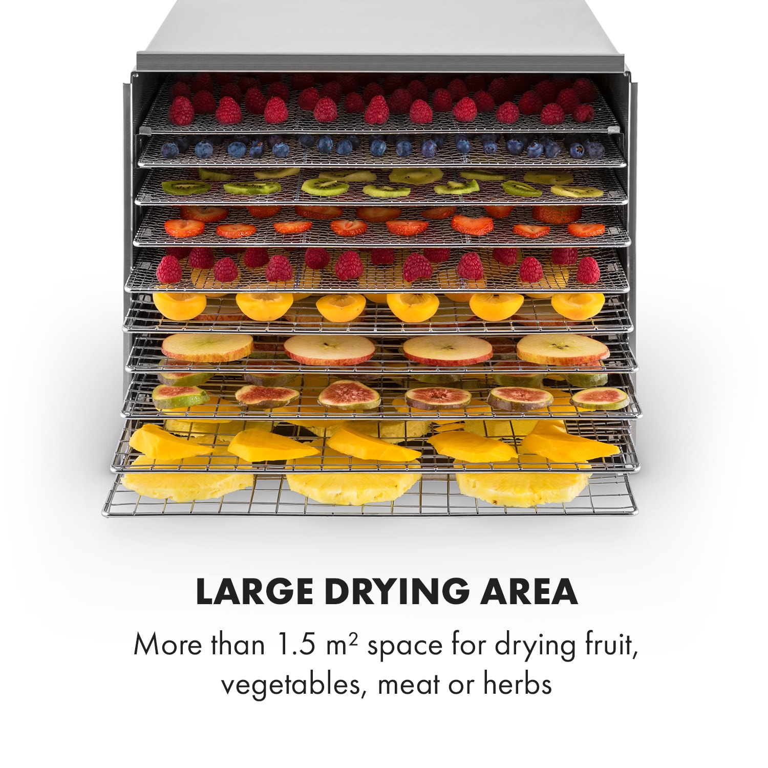 Klarstein Fruit Jerky Steel 10, sušička ovocia, 1000 W, 10 poschodí