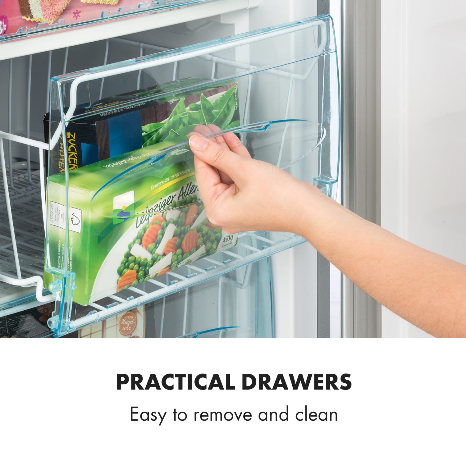 Optimálne skladovanie mrazených potravín: so svojím využiteľným objemom 60 litrov ponúka 4-hviezdičková mraznička Garfield XL od Klarstein dostatok priestoru na mrazené potraviny. Vnútorný priestor je rozdelený na 3 úrovne s dvoma praktickými vyberateľnými zásuvkami. Výkon mrazenia si môžete individuálne nastaviť pomocou plynule nastaviteľného ovládacieho gombíka na zadnej strane prístroja. Vďaka svojmu nadčasovému, jednoduchému dizajnu Garfield XL krásne zapadne do každej kuchyne a zaujme svojou tichou prevádzkou.