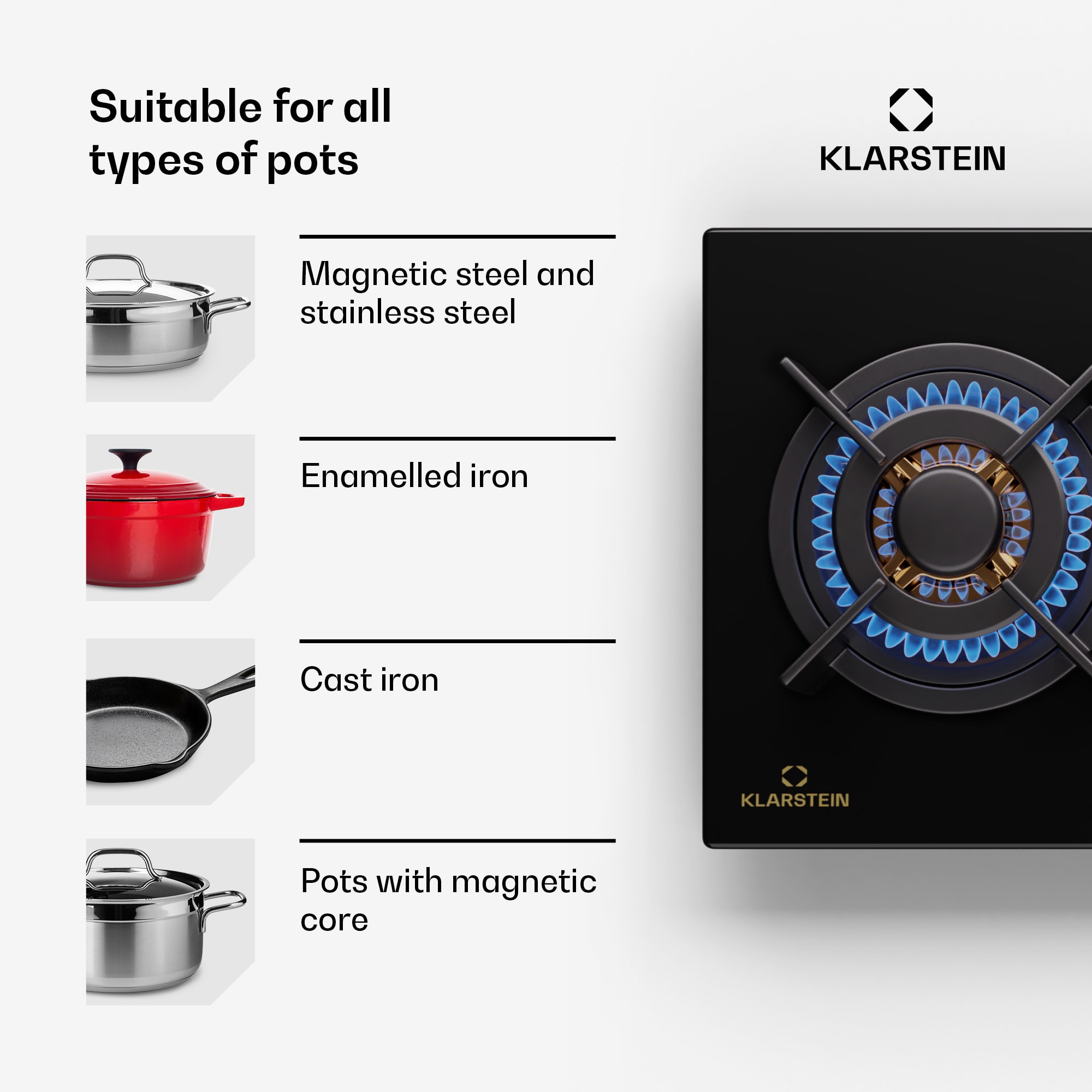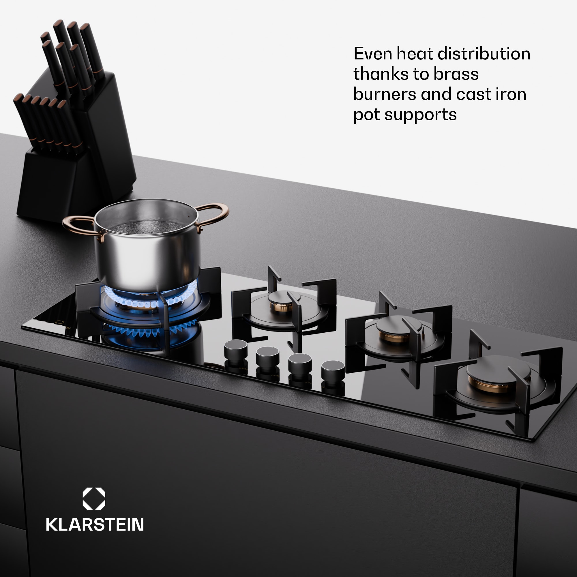 Klarstein Goldflame 4 Slim, plynová varná doska, 4 horáky, sebestačná, zemný plyn/propán, nehrdzavejúca oceľ