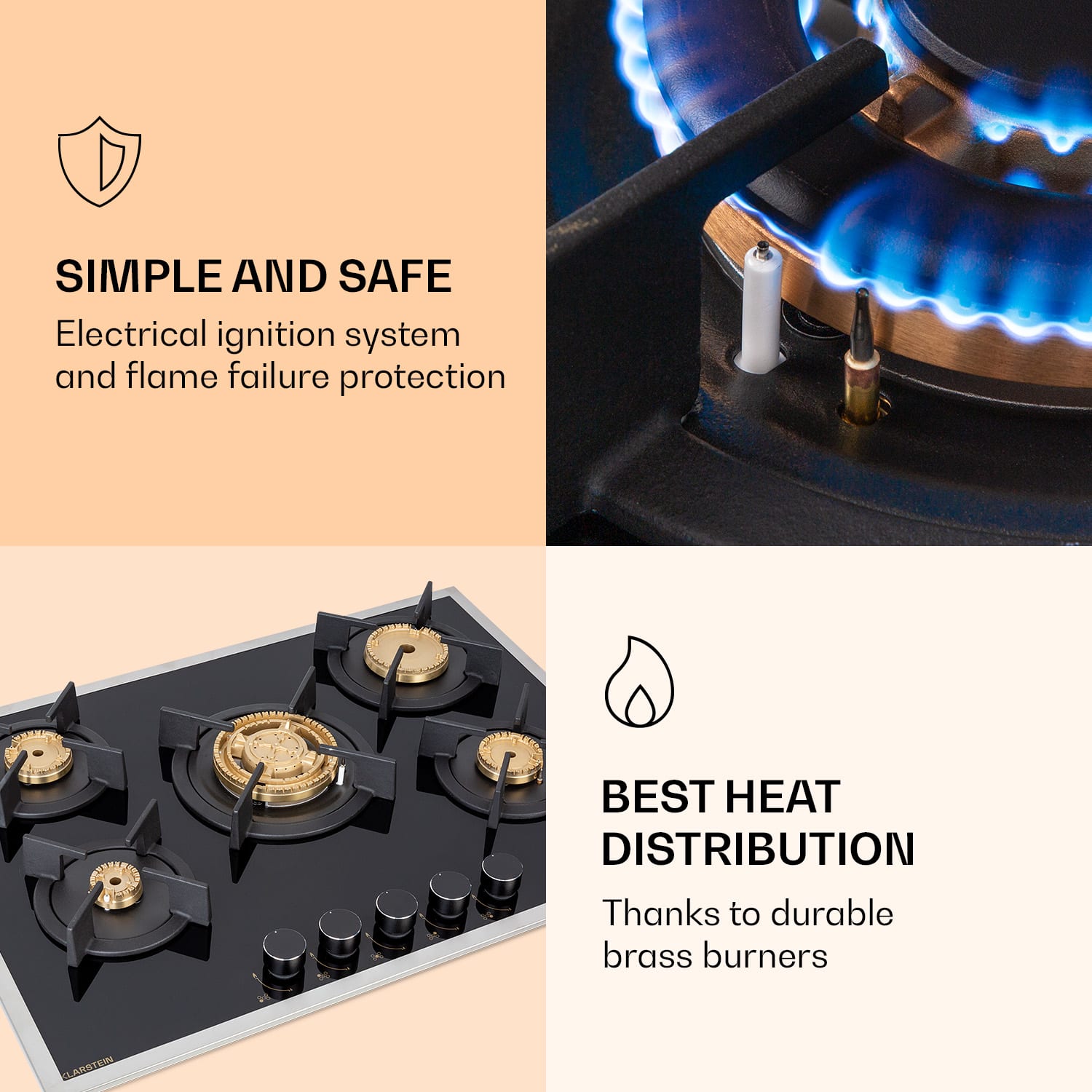 Klarstein Goldflame 5 Prime, plynová varná doska, 5 Messing horákov, sklokeramika