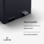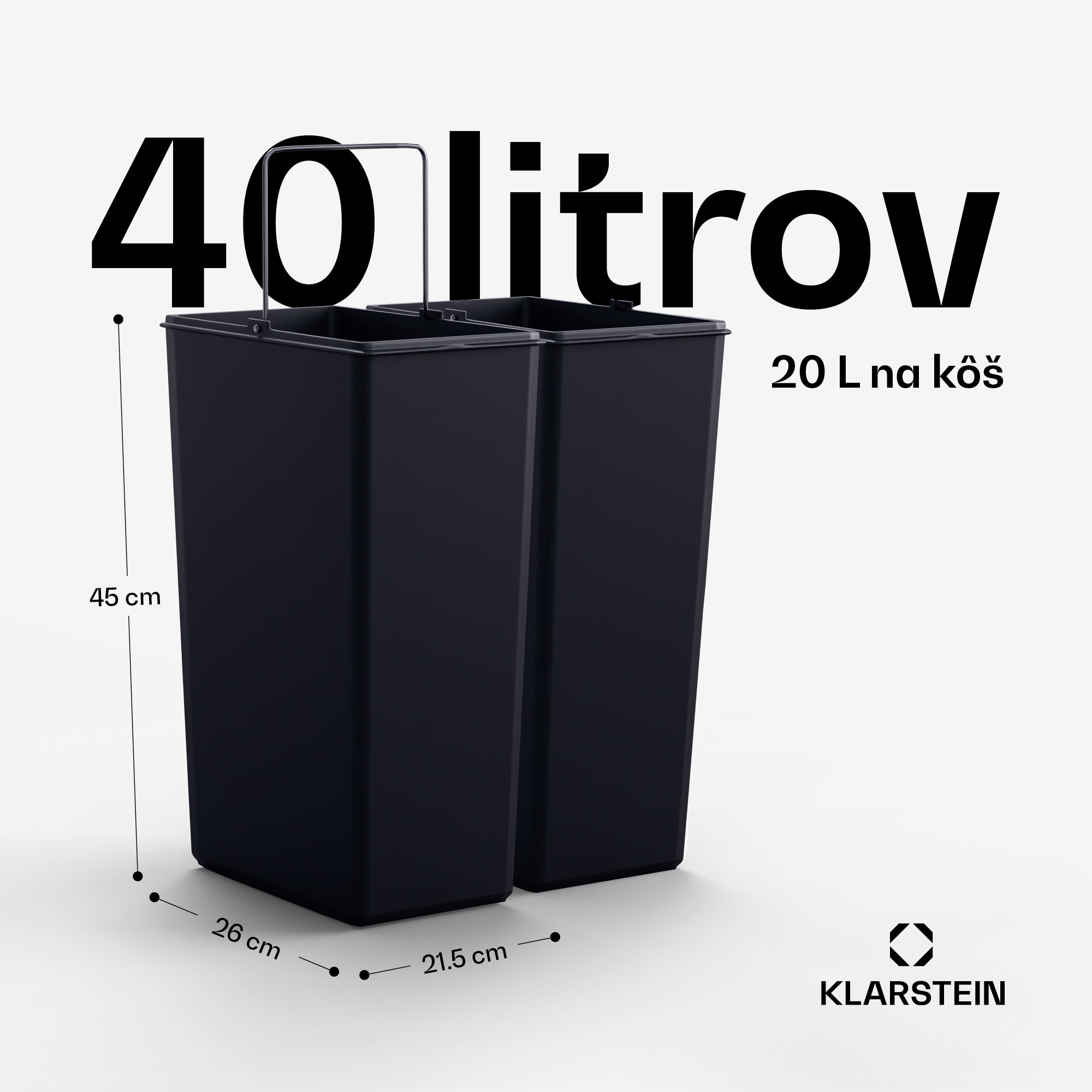 Jednoduché triedenie odpadu v záujme životného prostredia: Klarstein Grama 40 odpadkový kôš bez šumu pohltí všetok odpad a vo svojom dvojdielnom interiéri ho udrží oddelený od seba. Vďaka tomu je veľmi jednoduché oddeliť recyklovateľné materiály od zvyškového odpadu.Na tento účel ponúka Klarstein Grama 40 odpadkový kôš vo svojom objemnom interiéri nie len jeden, ale dva koše na triedenie odpadu – vďaka tomu je triedenie odpadu naozaj jednoduché. Dve samostatne vyberateľné vedrá z PP plastu odolného proti rozbitiu, každé s objemom 20 litrov, sú ukryté v 40-litrovom separátore odpadu a čakajú na všetok vznikajúci odpad. Klapky jednotlivých vedier sa pohybujú nahor pomocou pedálu. Keď je odpad v koši, klapky sa opäť ticho zatvoria. Pochrómovaná kovová rukoväť umožňuje samostatné vybratie každého vedra na vyprázdnenie. Vďaka ušľachtilému exteriéru v retro štýle 50. rokov vyžaruje zberač odpadu šarm na každom mieste inštalácie.Štýlový pre životné prostredie: Klarstein Grama 40 odpadkový kôš zaujme ušľachtilou postavou a triedenie odpadu sa vďaka nemu stane hračkou.