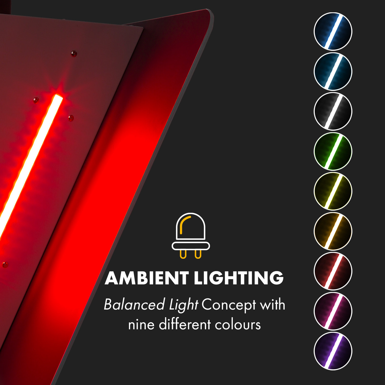 Digestor Klarstein Helena 60 presviedča triedou energetickej účinnosti A, zaručuje vysoké hodnoty prietoku vzduchu a vďaka farebnému ambientnému osvetleniu ozvláštni atmosféru v kuchyni.Vďaka trom stupňom výkonu možno výkon digestora Helena 60 ľahko prispôsobiť procesu varenia. Na najvyššej úrovni odsáva z kuchyne až 595 m³/h vzduchu a zvládne aj prípravu niekoľkých chodov. Vďaka najmodernejšej technológii zostáva hladina hluku a spotreba energie príjemne nízka, len 63 dB a trieda energetickej účinnosti A. Digestor Klarstein Helena 60 je mimoriadne atraktívny nielen vďaka svojmu elegantnému vzhľadu, ale aj vďaka voliteľnému ambientnému osvetleniu s deviatimi rôznymi farbami. Tento digestor s voľným priestorom na hlavu dodá každej kuchyni vlastnú špeciálnu atmosféru. Dve prepínateľné LED lampy nad varnou plochou umožňujú mať panvice a hrnce v dokonalom prehľade. Všetky ovládacie prvky sú integrované priamo do povrchu ako dotykový panel a displej. Všetok potrebný materiál pre montáž na stenu, výfuková hadica a vhodný kryt komína sú súčasťou dodávky. Pomocou dvoch filtrov s aktívnym uhlím možno digestor jednoducho prestavať na recirkulačný režim.Energeticky úsporný, ekologický, výkonný s jasným svetlom: Najdôležitejšie vlastnosti digestora Klarstein Helena 60 už na prvý pohľad.