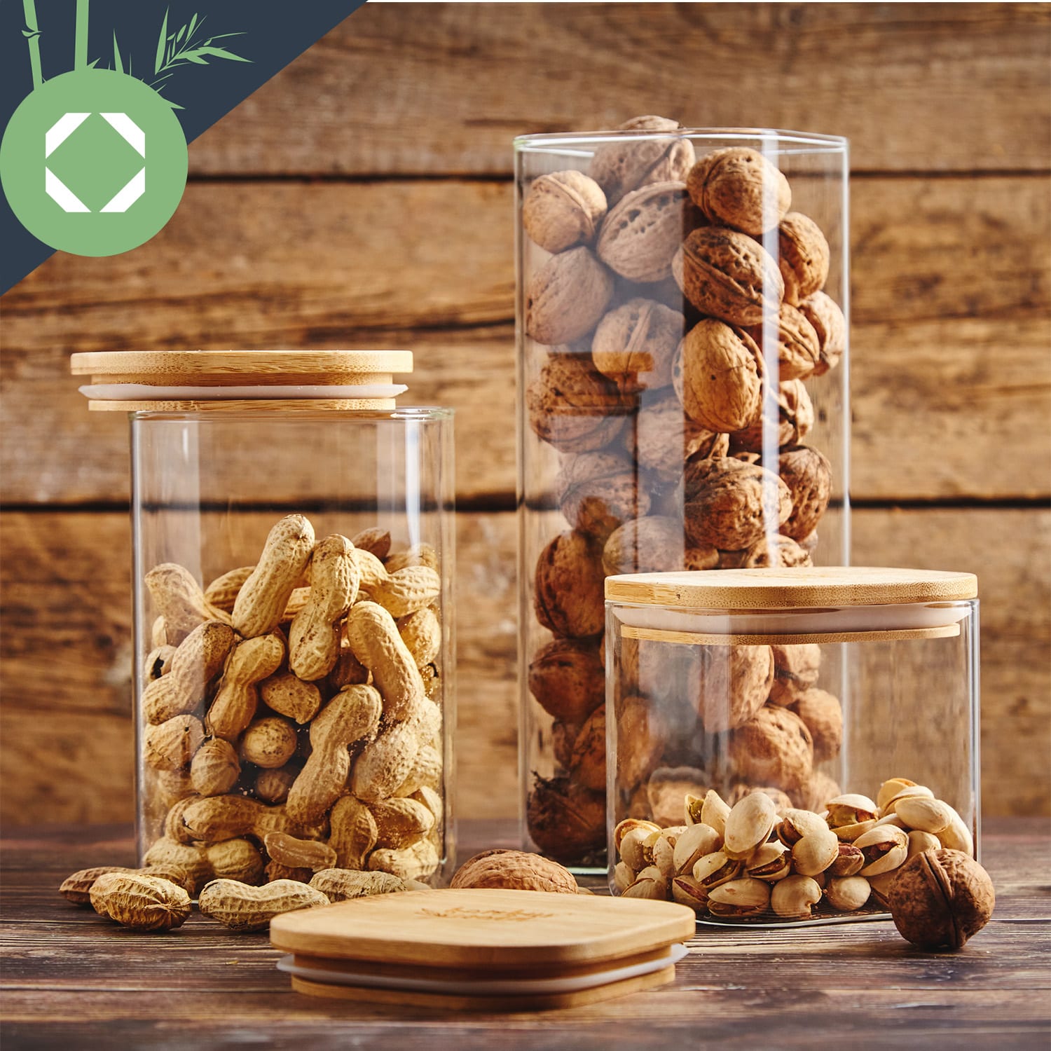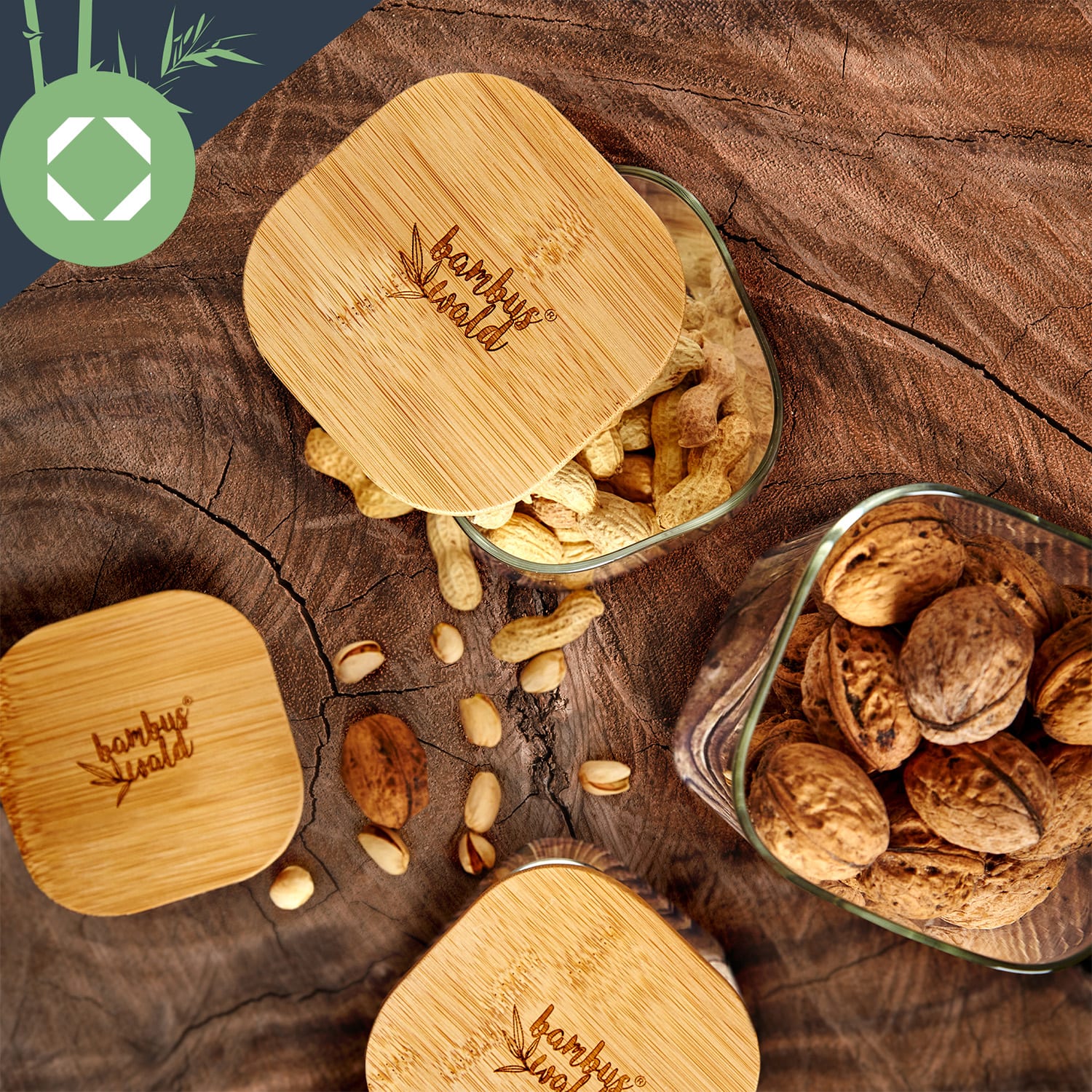 Klarstein Hranatá nádoba na skladovanie potravín s bambusovým vrchnákom, 10 x 10 x 10 cm, 700 ml, vzduchotesná, so silikónovým tesnením