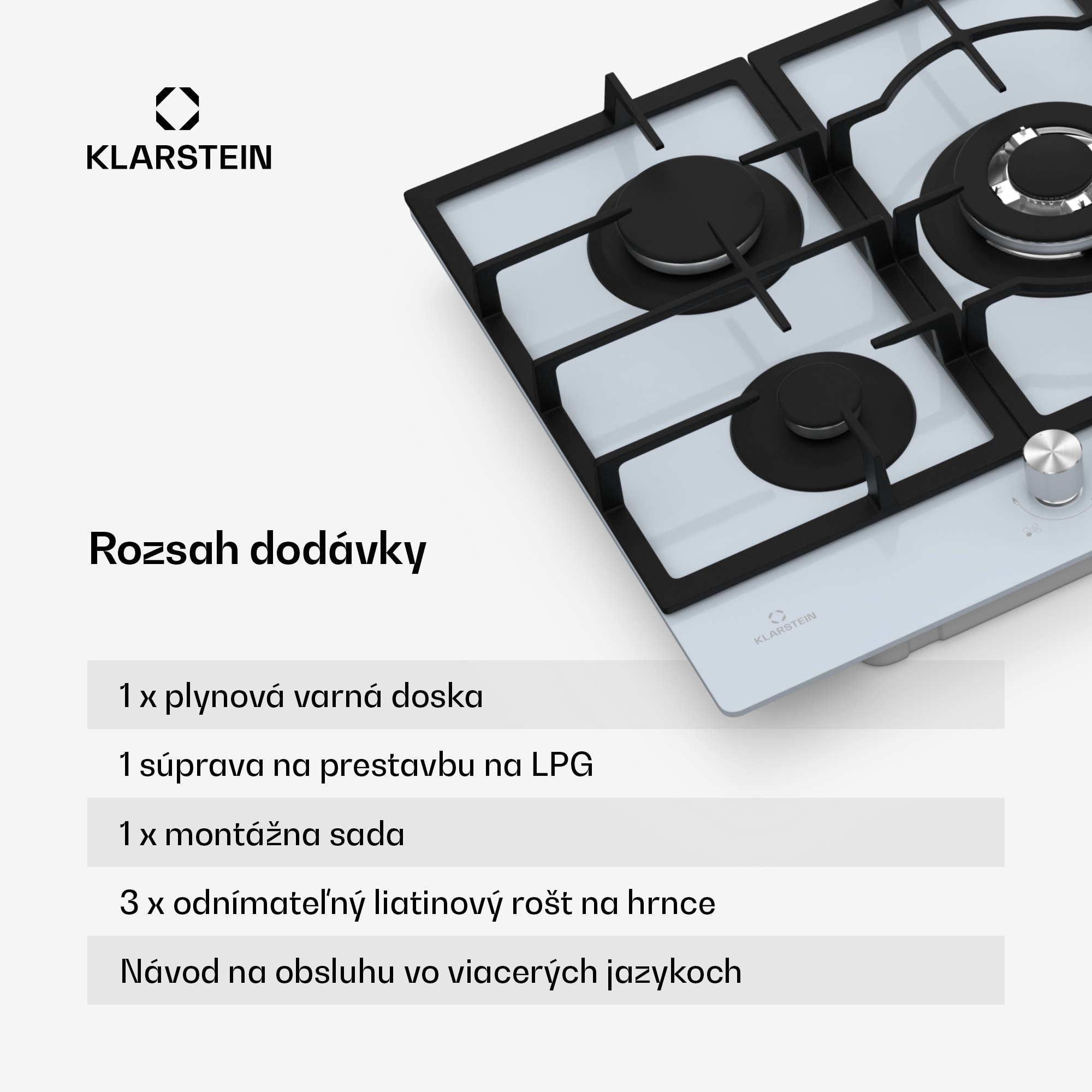 Klarstein Ignito 5-zónová plynová varná doska, 5 Horákov, elektr. zapaľovanie, Wok, na skvapalnený alebo zemný plyn