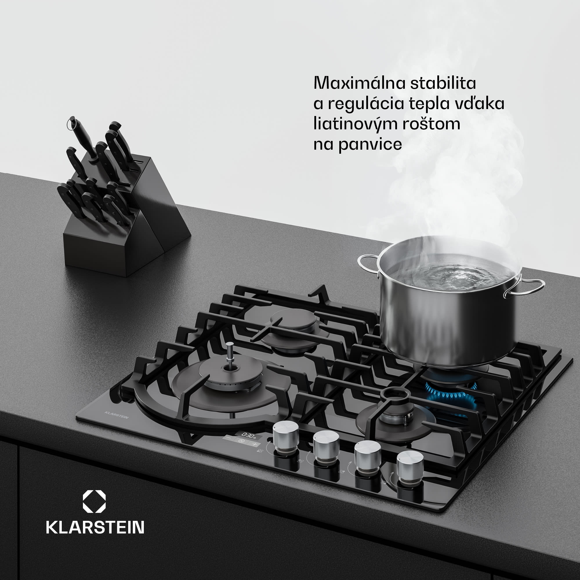 Klarstein Ignito plynová varná doska, 8 kW, liatinové rošty, časovač, regulácia teploty