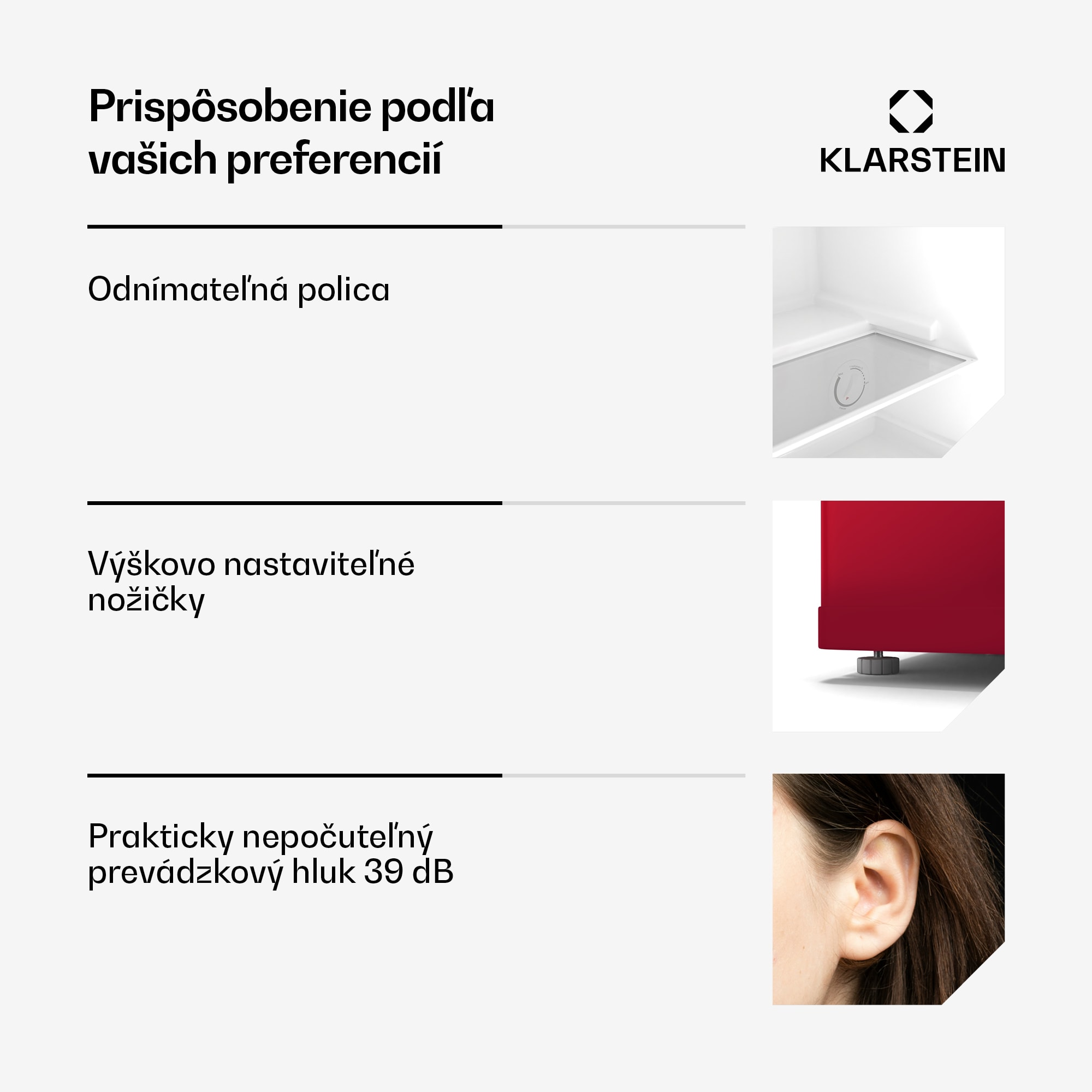 Chladnička a mraznička Klarstein Irene Retro kombinuje retro dizajn s modernou funkčnosťou. Dá sa flexibilne používať ako chladnička alebo mraznička, vďaka kompaktnému dizajnu sa hodí do každej miestnosti a ponúka energetickú účinnosť triedy C.Vďaka flexibilnému teplotnému rozsahu od 10 do -24 °C možno zariadenie Irene Retro bez námahy premeniť z chladničky na mrazničku. Vnútorný priestor s objemom 31 litrov ponúka dostatok miesta a je optimálne usporiadaný vďaka odnímateľnej mriežkovanej polici. Retro vzhľad sa štýlovo hodí do obývacích izieb, kancelárií alebo rekreačných domov. Vďaka triede energetickej účinnosti C zaujme nízkou spotrebou energie a chráni životné prostredie. Prevádzková hlučnosť len 38 dB zaručuje tichú prevádzku, ktorá je ideálna pre tiché prostredie. Ďalšie plus: výškovo nastaviteľné nožičky, ktoré umožňujú flexibilné umiestnenie, ako aj integrované vnútorné osvetlenie zaisťujúce orientáciu aj za zhoršenej viditeľnosti.Zažite retro šarm a flexibilnú chladiacu techniku – objavte teraz chladničku a zároveň mrazničku Klarstein Irene Retro a optimalizujte svoje možnosti chladenia!