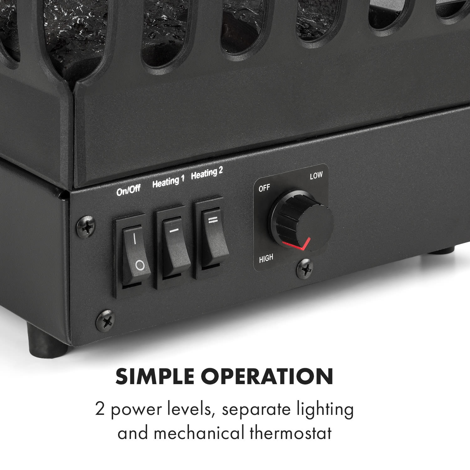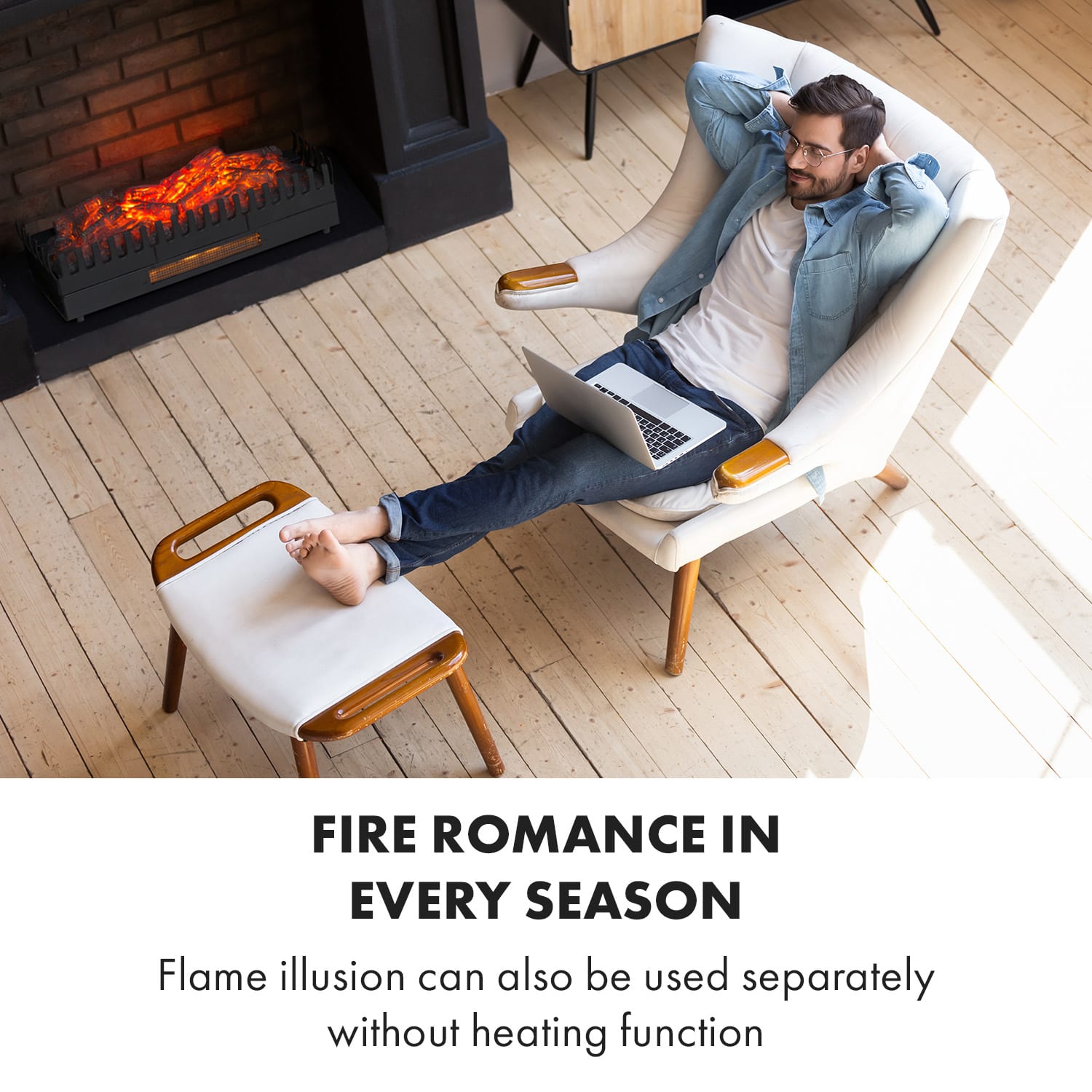 Romantická atmosféra krbu každý večer v každom ročnom období! Elektrický krb Klarstein Kamini FXL funguje úplne bez otvoreného ohňa jedným stlačením tlačidla. Dá sa použiť nielen v existujúcich krboch, ale môže tiež voľne stáť v akejkoľvek miestnosti. Jemné svetlo uhlíkov pochádza z úspornej 2 W LED žiarovky a svojimi pohybmi umelo napodobňuje skutočné tlejúce polená. Prepínateľná funkcia ohrevu pracuje s výkonom 1000 alebo 2000 W a krb má tiež funkciu ventilátora. Aj v lete si teraz môžete užiť krásny oheň v krbe: nastavíte si jednoducho len osvetlenie.Vďaka svojej kompaktnej konštrukcii a nízkej hmotnosti sa elektrický krb Kamini dá jednoducho prenášať a umiestniť kdekoľvek. Obsluha krbovej vložky Klarstein Kamini FXL prebieha veľmi jednoducho pomocou štyroch ľahko prístupných prepínačov. Čistenie sa nedá porovnať s tradičným krbom so skutočným ohňom: nevznikajú žiadne sadze ani iné nečistoty, všetko zostáva čisté.Jednoducho si kedykoľvek užívajte v ktorejkoľvek miestnosti efekt plameňov a teplo bez ohňa: so zariadením Kamini FXL od spoločnosti Klarstein.