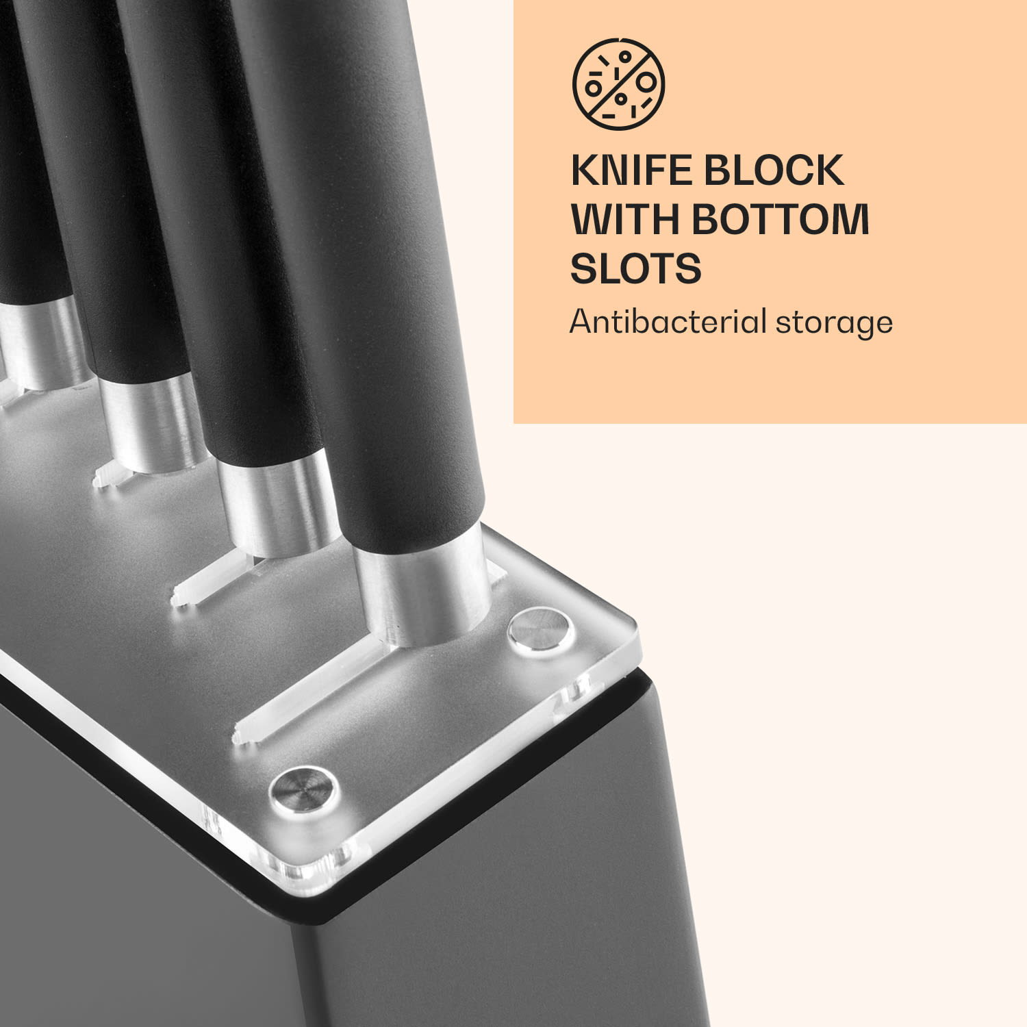 Maximálny pôžitok z čerstvých surovín si vyžaduje ten správny nôž. Na to obsahuje blok nožov Kitano od spoločnosti Klarstein 7 modelov s rôznymi precíznymi čepeľami z tvrdenej ocele. Vďaka ergonomickému tvaru a protišmykovému materiálu sa nože dobre držia v ruke. Môžete ich bezpečne uložiť do príslušného bloku na nože. Vďaka krytu z plexiskla a otvorom na dne je tiež veľmi hygienický. Ušľachtilý drevený blok zároveň dodá vašej kuchyni luxusný lesk. Čepel a ostrosť v harmónii – pre kulinárske umenie ďalekého východu vo vašej kuchyni!