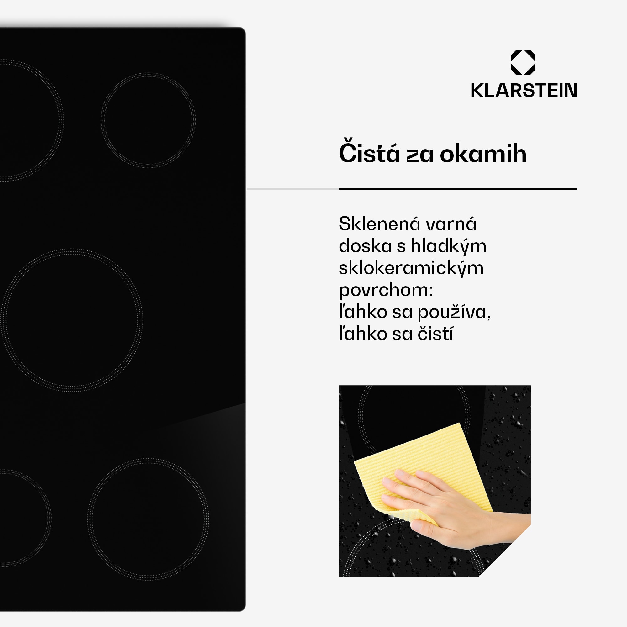 Indukčná varná doska Klarstein Kochheld kombinuje elegantný dizajn s vysokým výkonom a energeticky úspornou technológiou. Vďaka lesklému sklenenému povrchu kombinuje vysoko kvalitné a odolné materiály s ľahko čistiteľným povrchom.Päť výkonných, vysokokvalitných indukčných varných zón s celkovým výkonom až 8700 W (v režime Boost) zaručujú plynulé varenie.Vďaka otočnému ovládaču sa varná doska ľahko a intuitívne ovláda a jej bezpečná prevádzka je zaručená ochranou proti prehriatiu a indikátorom zvyškového tepla.