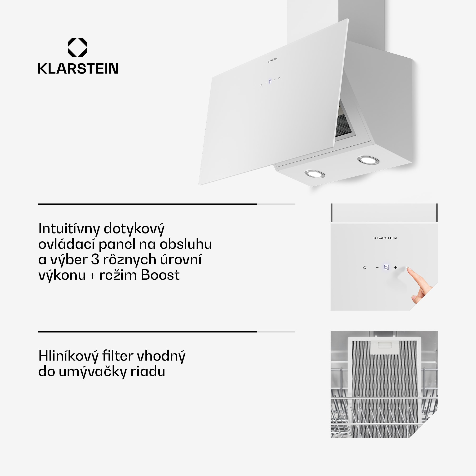 Klarstein Laurel šikmý digestor | režim odsávania vzduchu a recirkulácie | bezpečnostné sklo | 417 m³/h | 60 cm