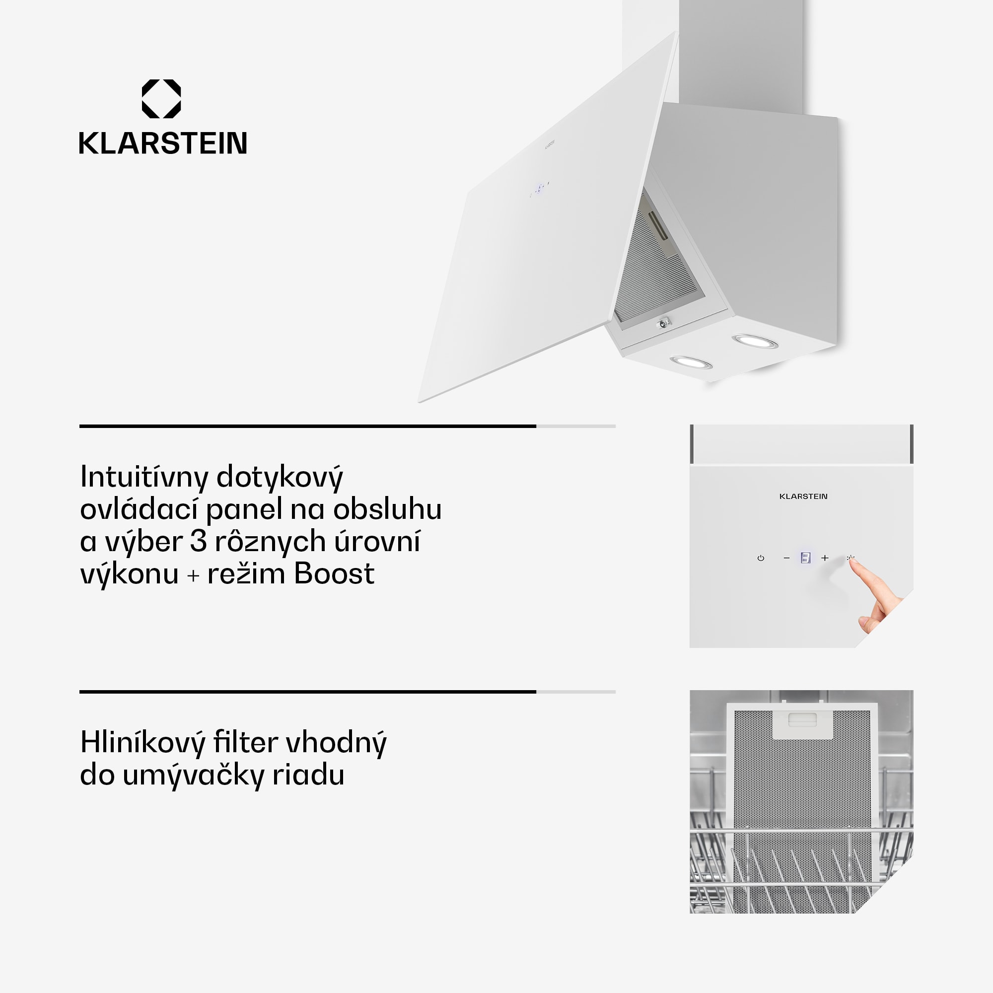 Klarstein Laurel šikmý digestor | režim odsávania vzduchu a recirkulácie | bezpečnostné sklo | 417 m³/h | 90 cm