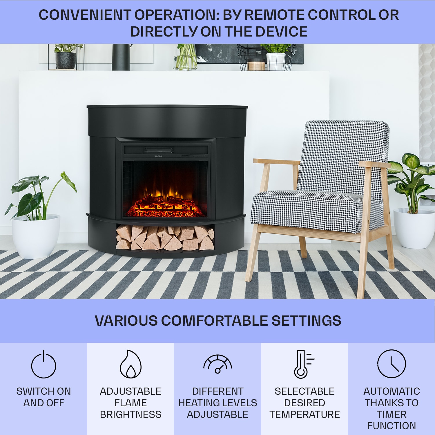 Loloru od Klarstein je ohnivý elektrický krb s 2 nastaveniami tepla, ktorý vytvorí romantickú a útulnú atmosféru v každej miestnosti. Elektrický krb s 9 nastaviteľnými úrovňami jasu a teplotným rozsahom 18-30 °C vytvorí vo vašej obývačke tú správnu atmosféru v každom ročnom období. Jeho veľká horná časť ponúka dostatok priestoru na svietniky, fotografie, knihy alebo iné dekoratívne predmety, ktoré si zaslúžia špeciálne miesto vo vašej domácnosti. Kryt je z oboch strán z tehál, čo jasne podčiarkuje autentický dojem krbu. Ukončite deň pred elektrickým krbom Loloru od Klarstein a vychutnáte si relaxačný účinok plápolajúcich plameňov. Poznámka: Spotrebič nie je vhodný na použitie ako primárny zdroj vykurovania.
