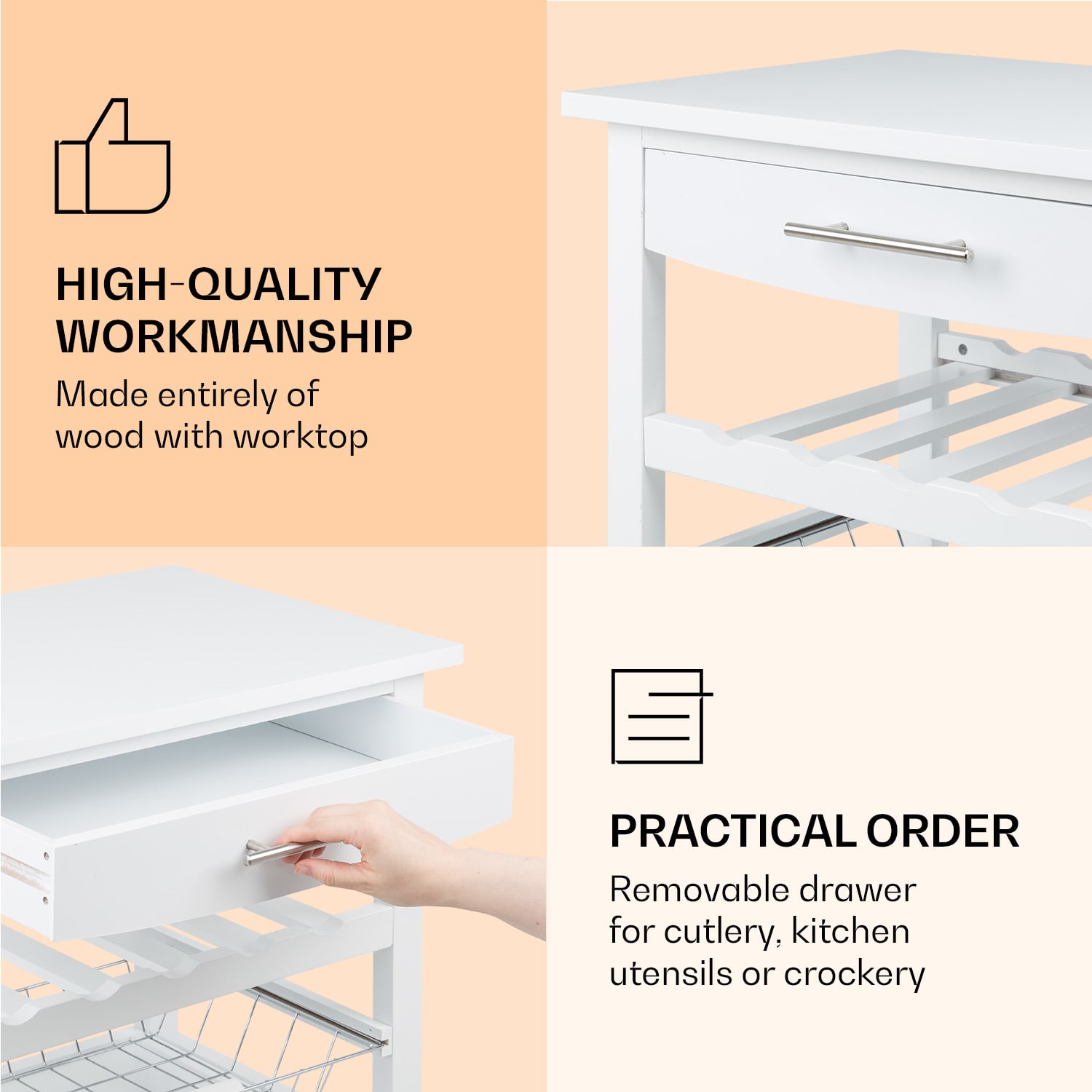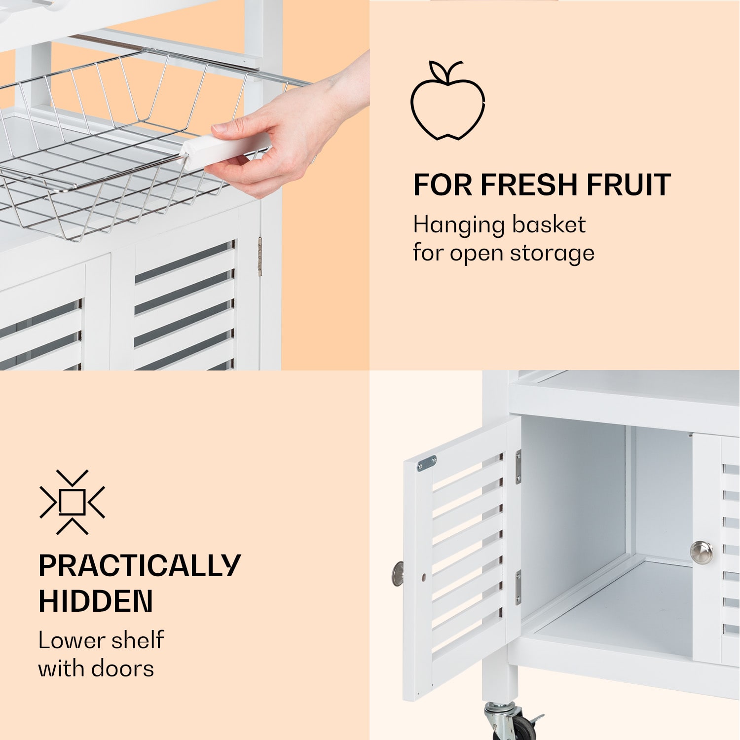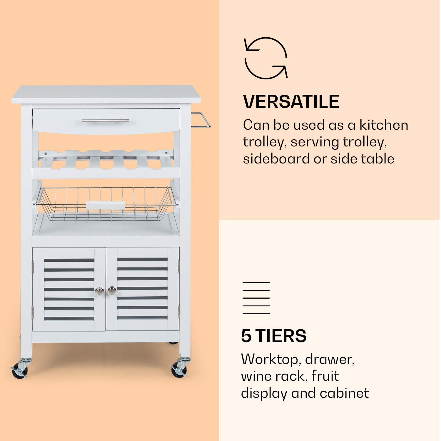 Klarstein Louisiana, servírovací vozík, kuchynský vozík, 5 poschodí, drevený držiak na utierky, mobilný
