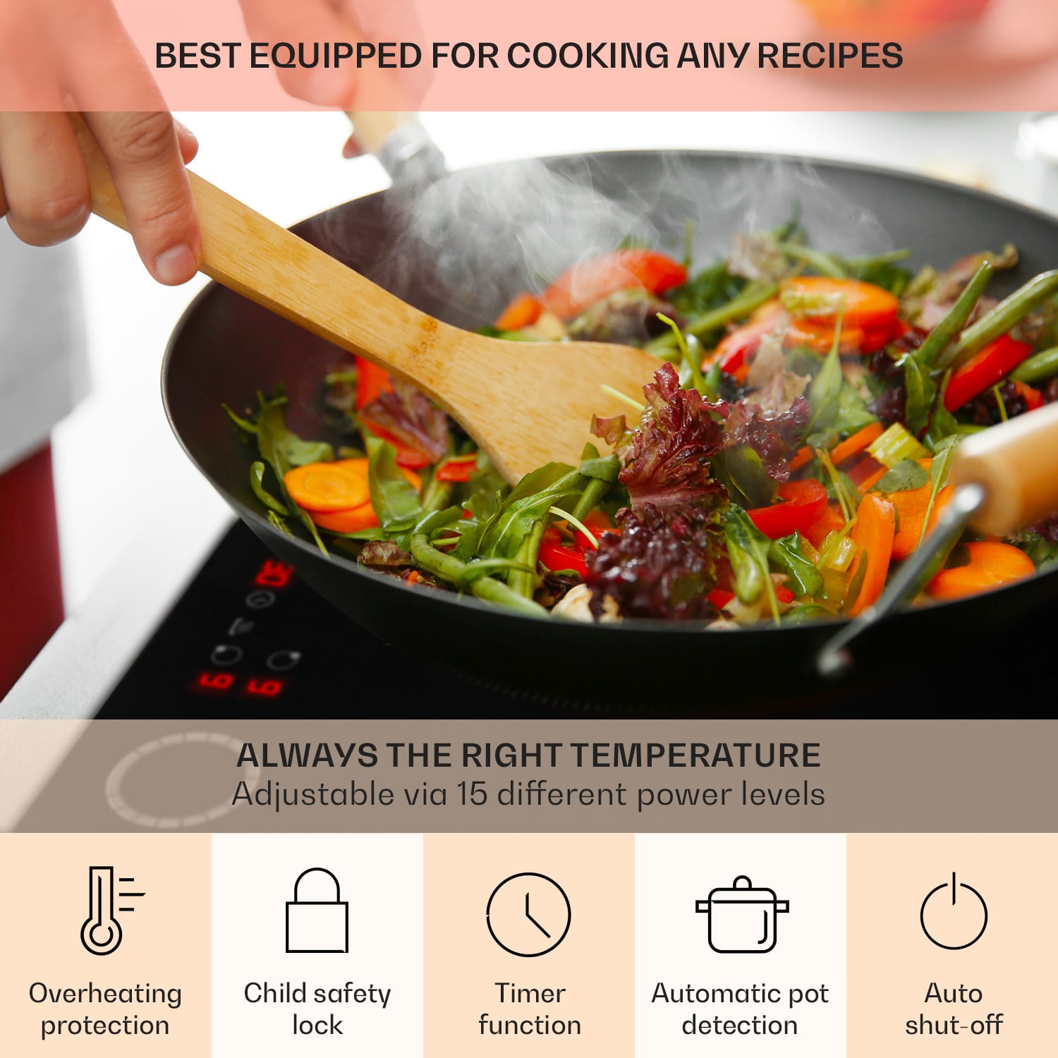 Jednoducho flexibilnejšie varenie: Indukčná varná doska Magnichef 4 od Klarstein umožňuje optimálne využitie priestoru s minimálnou spotrebou energie počas varenia. Spája technické inovácie s luxusným vzhľadom a vďaka sklokeramickému povrchu prináša kuchynskej linke nový lesk. Okrem toho ponúka vstavaná varná doska vysokú úroveň bezpečnosti: ochranu proti prehriatiu, detekciu hrnca, ukazovateľ zvyškového tepla, funkciu udržiavania teploty, automatické vypnutie a detskú poistku. Obsluha je nenáročná a vykonáva sa kompletne pomocou dotykového ovládacieho panela a magnetického gombíka. Zlatý klinec: odnímateľný magnetický regulátor na jednoduché čistenie a ako detská poistka