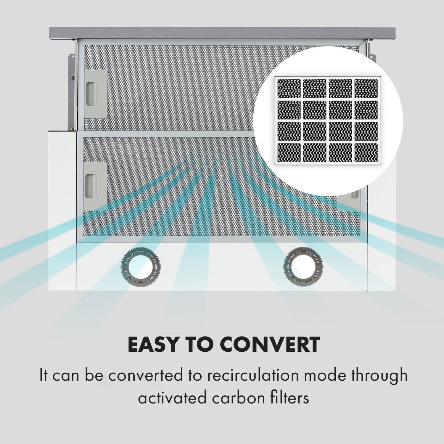 Čistejší vzduch v okamihu. Výsuvný plochý odsávač pár Klarstein Mariana 60 presvedčí silným výkonom, jednoduchou obsluhou a priestorovo úsporným dizajnom.Výsuvný digestor sa dá jednoducho a nekomplikovane namontovať pod kuchynské skrinky a vďaka svojmu kompaktnému dizajnu ponecháva dostatok priestoru na police a úložný priestor na koreniny alebo kuchynské náradie. Spodná koľajnica odsávača pár sa vytiahne len jedným pohybom a plocha tukových filtrov sa zdvojnásobí, aby sa rýchlo a efektívne stratil zápach z jedla, dym aj výpary s maximálnym odsávacím výkonom 500 m3/h. Intenzita odsávania vzduchu odsávača pár sa dá regulovať priamo na zariadení pomocou tlačidiel. Dve LED svetlá okrem toho zaručujú neobmedzený výhľad na celý proces varenia. Na ochranu vnútra odsávača a odsávacieho kanála pred znečistením má zariadenie Mariana dva vymeniteľné hliníkové tukové filtre, ktoré je možné umývať v umývačke riadu. Všestranný, výkonný a neuveriteľne kompaktný: výsuvný odsávač pár Klarstein Mariana 60 s inteligentným výsuvným mechanizmom sa postará v každej chvíli o kuchyňu bez výparov.