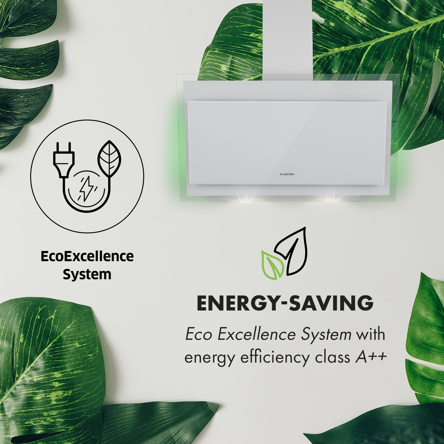 Klarstein Mirage 90, digestor, 90 cm, nástenný, 550 m³/h, A++, dotykový panel, RGB svetlo, biely