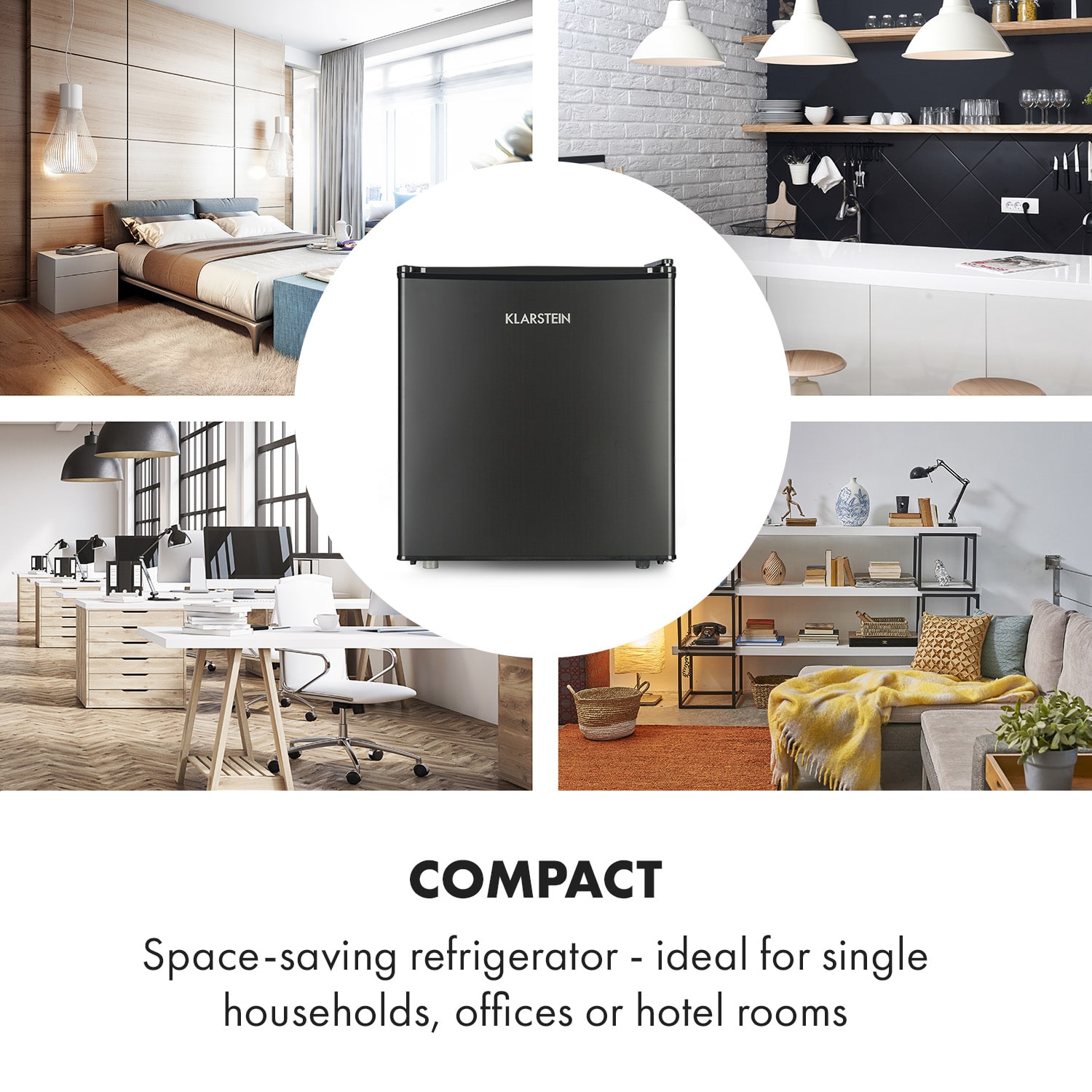 Čierna je krásna! Chladnička Obsidian od Klarstein je nielen kompaktná, ale zaujme aj svojím extravagantným dizajnom: je úplne čierna – zvonku aj zvnútra – a v kuchyni je skutočným pútačom pozornosti. Chladnička Obsidian od Klarstein s úžitkovým objemom 46 litrov ponúka dostatok priestoru pre všetky druhy potravín. V dvoch dverových priehradkách nájdete potrebný úložný priestor na fľaše a poháre a nechýba ani priehradka na ľad. Chladničku Obsidian možno jednoducho rozmraziť stlačením tlačidla na termostate. Minichladnička je vybavená odkvapkávacou miskou na zachytávanie kondenzátu. Čierna, kompaktná a moderná: Mini chladnička Obsidian od spoločnosti Klarstein.