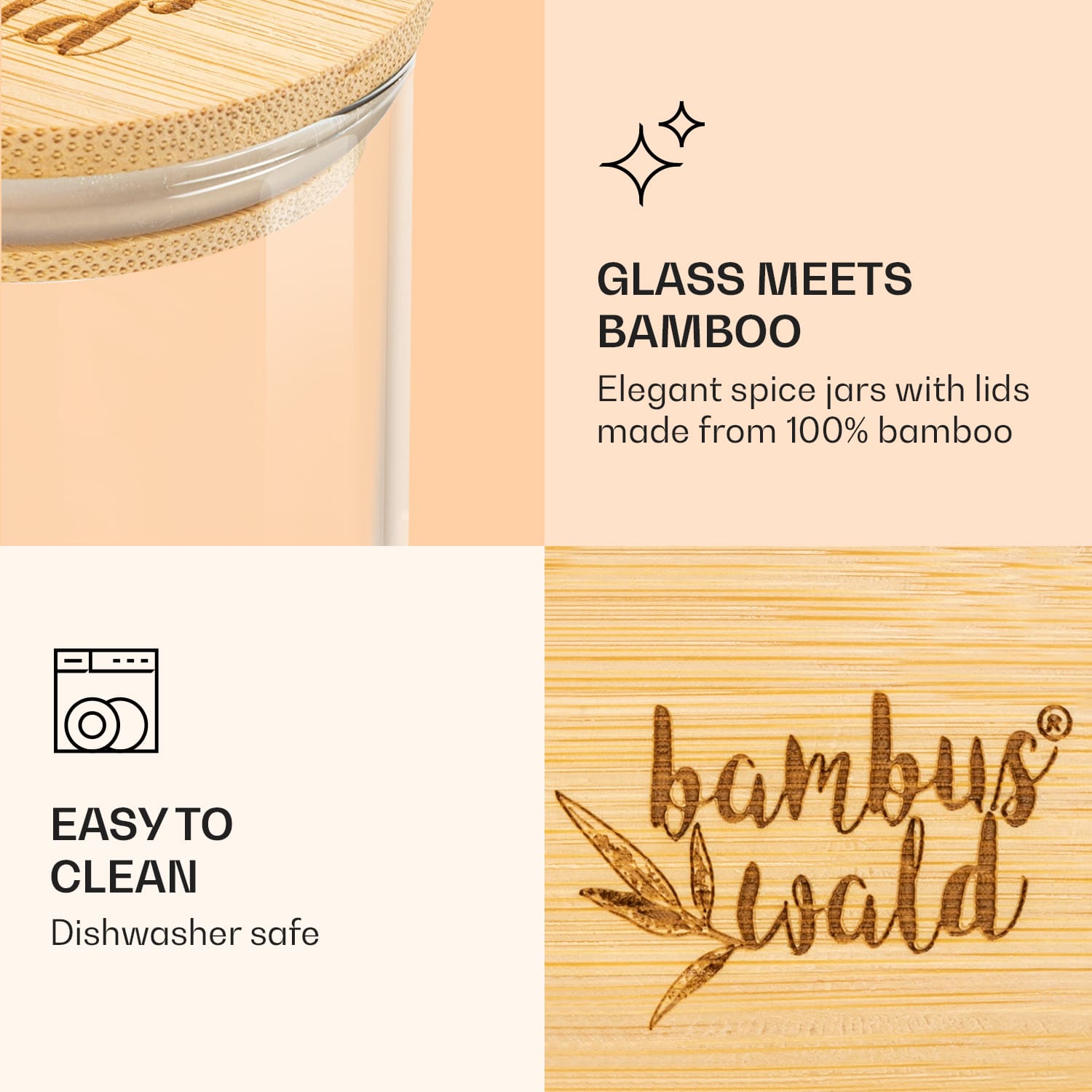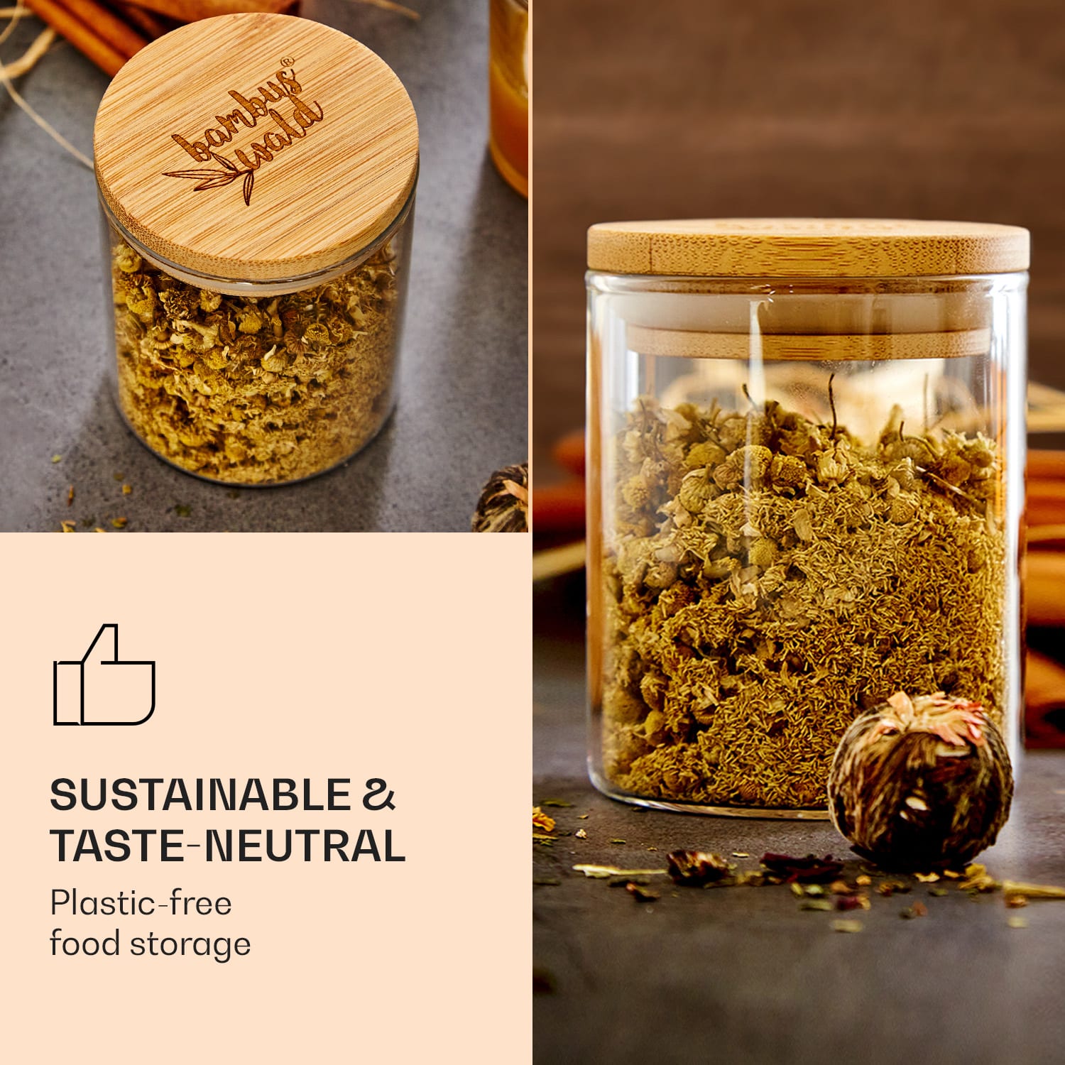 Koreniny sú niečo úžasné: nielenže dochutia všetky jedlá, ale zvyčajne so sebou prinášajú aj exotické farby. Naplň ich do okrúhleho pohára od Klarstein bambuswaldu, použi ich vzhľad ako jedinečnú dekoráciu a zaži maximálny komfort pri dochucovaní. Vďaka vrchnákom z čistého bambusu so silikónovým tesniacim krúžkom môžeš nádoby uzavrieť pevne a vzduchotesne, čím sa dlhodobo zachová aróma korenín. Do pohárikov, samozrejme, môžeš dať aj čaje, pečivo alebo sladkosti.