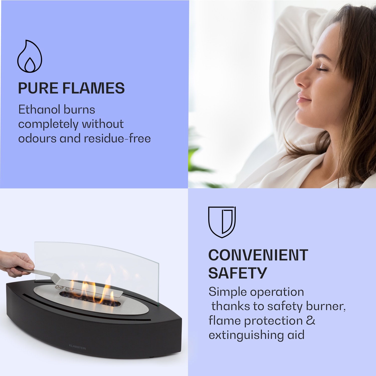 Klarstein Phantasma Curve, etanolový krb, horák z nehrdzavejúcej ocele, bez dymu a zápachu, bezpečnostné sklo