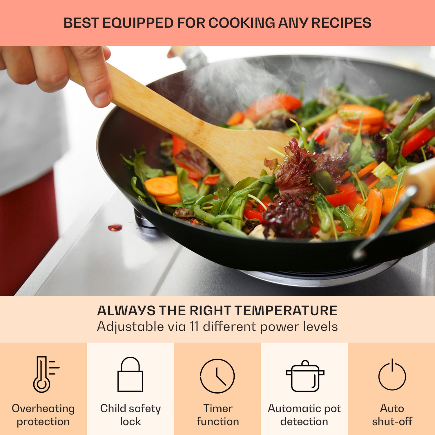 Jednoducho flexibilnejšie varenie: Dvojplatnička Ramsey od Klarstein umožňuje optimálne využitie priestoru pri varení. Kempingová varná doska Ramsey s dvomi varnými plochami a s celkovým výkonom 2400 W, ktorý obsah hrncov a panvíc privedie do varu v rekordnom čase. Dve zóny varnej dosky sa jednoducho ovládajú pomocou dvoch otočných ovládačov termostatu. 11 stupňov výkonu umožňuje pomalé varenie, ako aj rýchly ohrev či vyprážanie. Zohriaty povrch umožňuje úsporné varenie so zvyškovým teplom aj po vypnutí. Po varení je varná doska v okamihu opäť čistá vďaka ľahko udržiavateľnej kombinácii nehrdzavejúcej ocele a sklokeramiky. Vďaka svojim kompaktným rozmerom je dvojplatnička Ramsey od Klarstein ideálna ako mobilný spoločník na cesty, napríklad na kempovanie alebo na letné pobyty v záhradnom domčeku. Jednoduchá cesta k teplému jedlu: So sklokeramickou varnou doskou Ramsey Klarstein Ramsey je vaša malá kuchyňa vždy s vami.