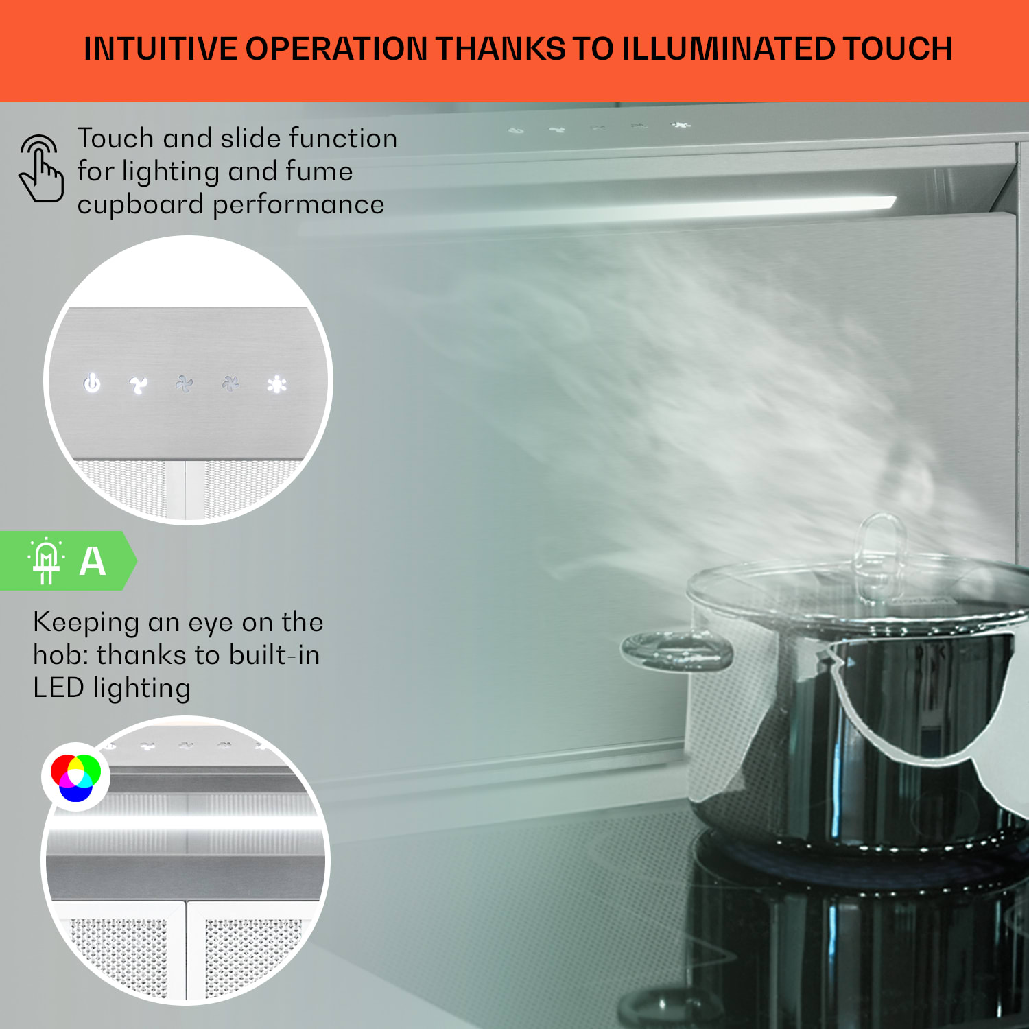 Tento výsuvný digestor je ako eso v rukáve: luxusný Downdraft digestor Royal Flush Eco od Klarstein neodsáva zhora, ale svoju prácu vykonáva priamo tam, kde sa para vytvára. Vďaka tomu je mimoriadne účinný a spoľahlivo odstraňuje paru a pachy s prietokom odsávania max. 576 m³/h. Pôsobivé je, že po skončení práce sa jemne a neviditeľne zapustí späť do pracovnej dosky a pôsobí veľmi ušľachtilým dojmom a má obzvlášť elegantný dizajn vyrobený z nehrdzavejúcej ocele a sklokeramiky. A pre väčšiu udržateľnosť sa Royal Flush Eco dodáva k vám domov s obzvlášť malým množstvom plastových obalov.Výkonný, elegantný a neviditeľný digestor: Elegantný Klarstein Royal Flush Eco.