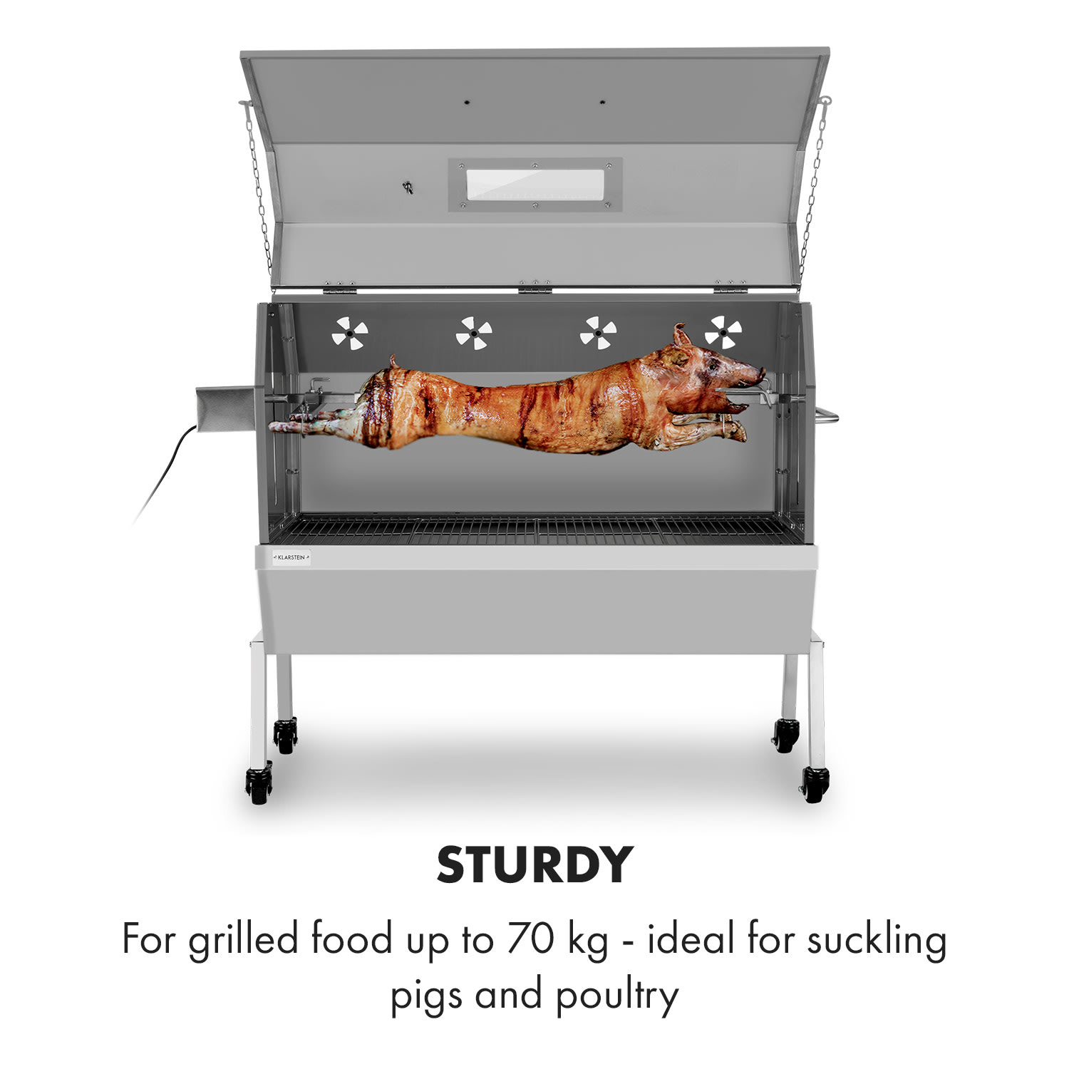 Klarstein Sauenland Pro XL, gril na prasiatko, otočný špíz, 13 W, 4 kolieska, ušľachtilá oceľ