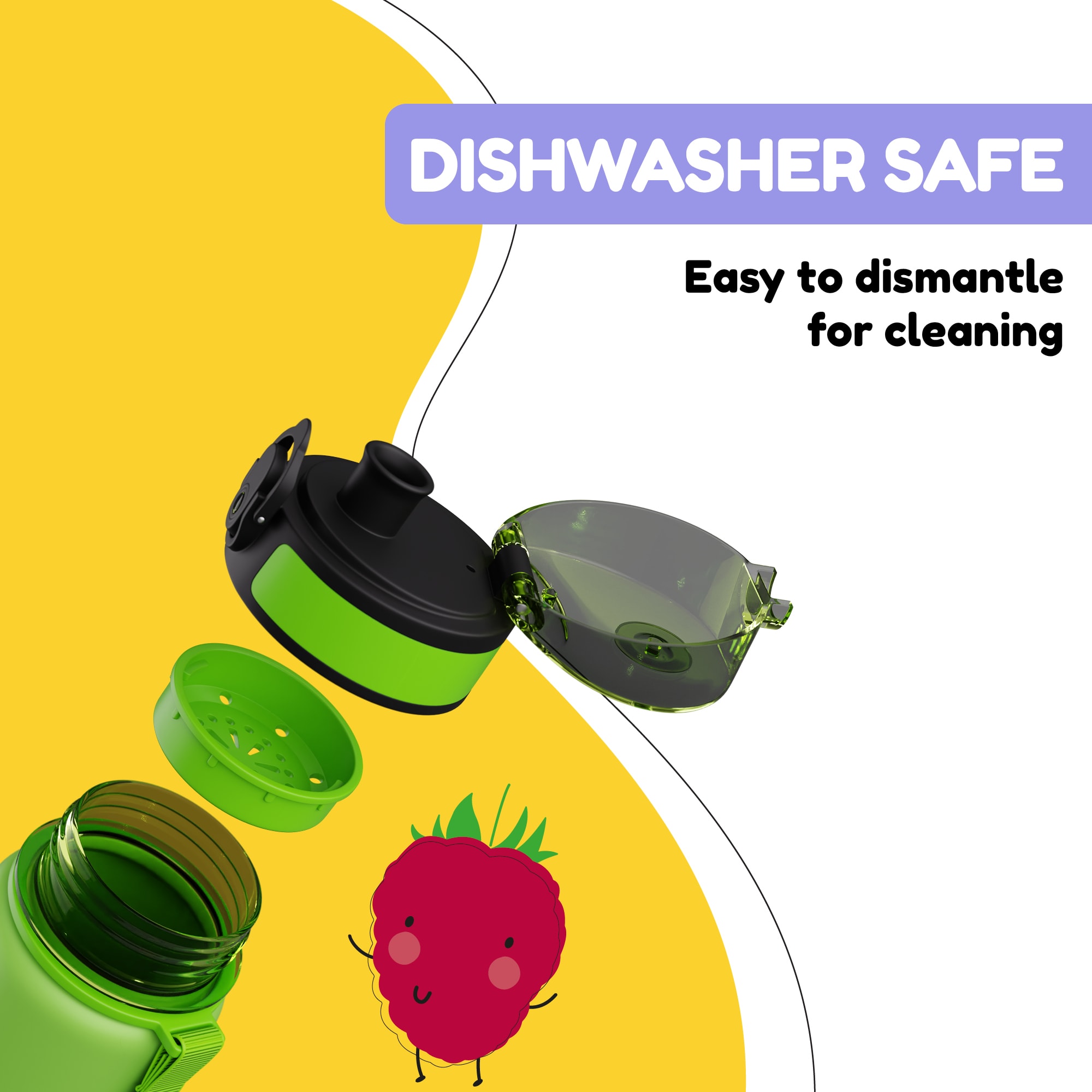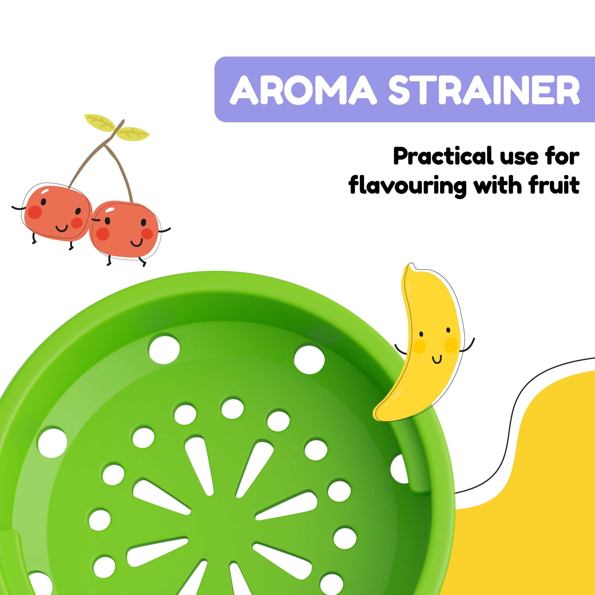 Fľaša na vodu pre deti Klarstein schmatzfatz je ideálnym spoločníkom na každý deň. Či už ste malý alebo veľký: vždy máte k dispozícii svoj obľúbený nápoj. A pritom vždy cestujete naľahko. Vďaka plastovému materiálu nemá fľaša na pitie takmer žiadnu hmotnosť navyše, hoci pojme pol litra tekutiny. Či už v školskej taške, batohu alebo dokonca v držiaku na bicykli: nič nevyteká, pretože táto komfortná fľaša na pitie má 100% nepriepustný uzáver.Prednosťou fľaše na pitie Klarstein schmatzfatz je jej športový dizajn. Zažijete jedinečný komfort pitia, pretože uzáver na 1 klik vám umožní otvoriť fľašu len jednou rukou. Na bočnej strane sa nachádza aj rukoväť na prenášanie, ktorú si môžete napríklad pri športe jednoducho obopnúť okolo zápästia. Takto máte dôležité tekutiny okamžite po ruke.Táto fľaša na vodu pre deti je vyrobená z Tritanu bez obsahu BPA a je ideálna ako fľaša na vodu, pretože materiál neovplyvňuje chuť nápoja a je absolútne neškodný pre vás alebo vaše deti. Chytrý doplnok: ovocný nástavec umožňuje osládiť vodu lahodným ovocím. Dužina zostáva pri pití vo fľaši, takže sa vo vode vytvára jemná aróma.Či už v škole, škôlke, pri športe alebo na výletoch: fľaša na pitie Klarstein schmatzfatz vám ponúka mnoho výhod vo všetkých každodenných situáciách. Presvedčí vás svojím športovým dizajnom vo výraznej farbe s roztomilým logom.