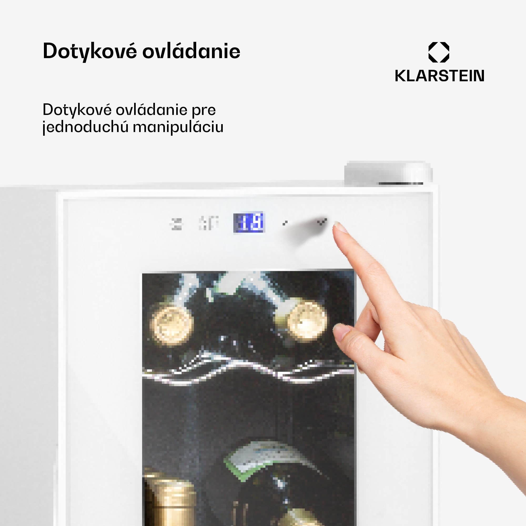 Klarstein Shiraz 12 Slim, vinotéka, 32 l, 12 fliaš, 85 W, 5–18°C, dotykový ovládací panel