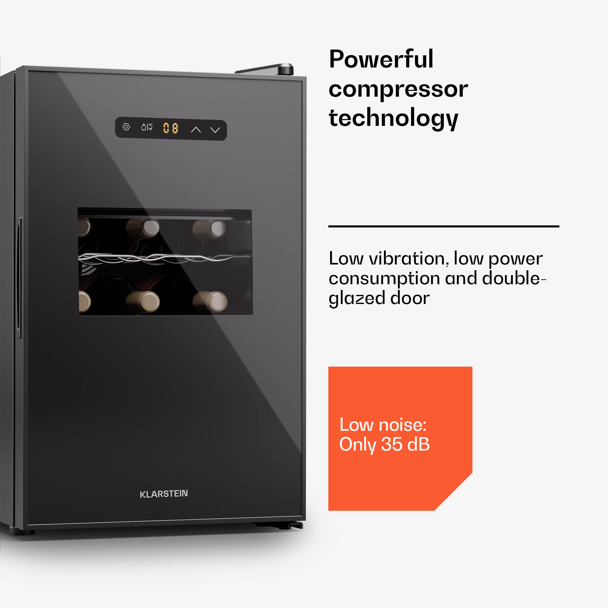Klarstein Silent Vino 15 Uno, chladnička na víno, 39 l / 15 fliaš, 5-18 °C, dotykové