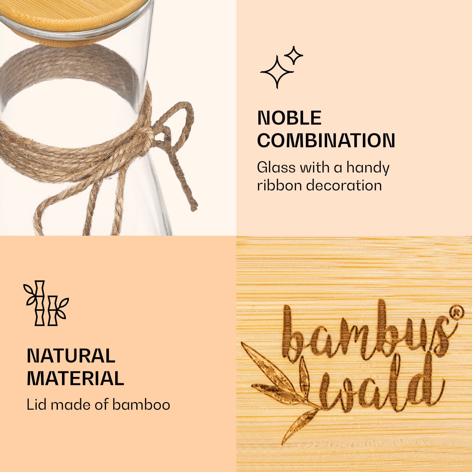 vychutnaj si horúce aj studené nápoje štýlovo: Elegantná sklenená karafa od spoločnosti Bambuswald je obohatením každej kuchyne. Okrúhly vrchnák z bambusu udržiava horúce nápoje dlhšie teplé a v lete ich chráni pred hmyzom. Pôsobivá dekorácia so stuhou zabezpečuje priľnavé uchopenie a poskytuje nádobe rustikálny a vidiecky nádych. Vďaka vyhotoveniu z borosilikátového skla je sklená nádoba mimoriadne stabilná a odolná.