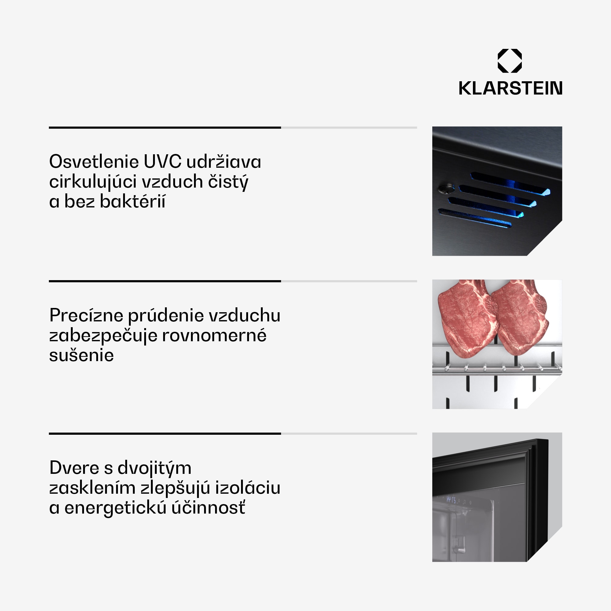 Klarstein Steakhouse skriňa na zrenie mäsa, 352 L, antibakteriálna, LED, dotykové ovládanie, regulácia vlhkosti