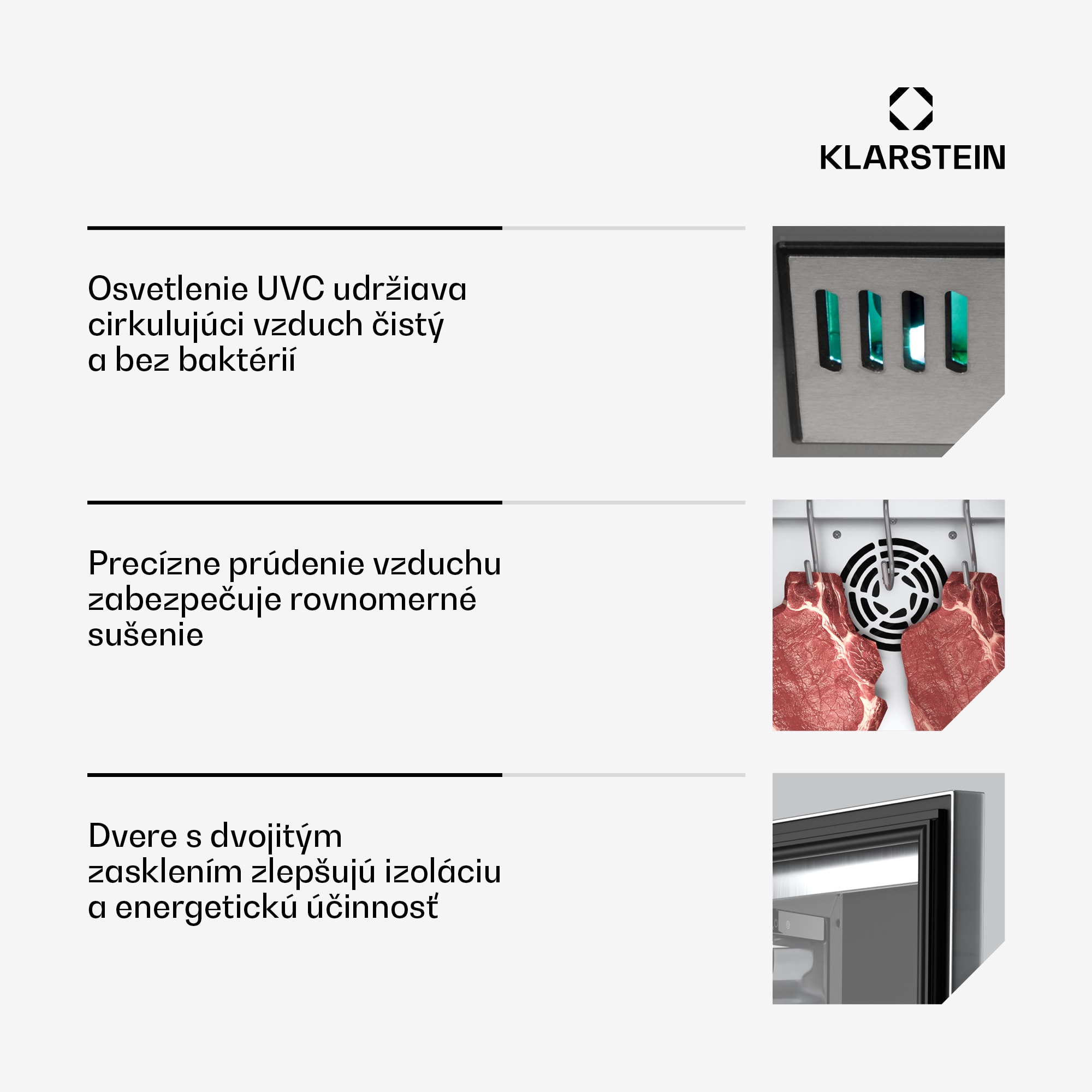 Klarstein Steakhouse skriňa na zrenie mäsa, 88 L, antibakteriálna, LED, dotykové ovládanie, regulácia vlhkosti